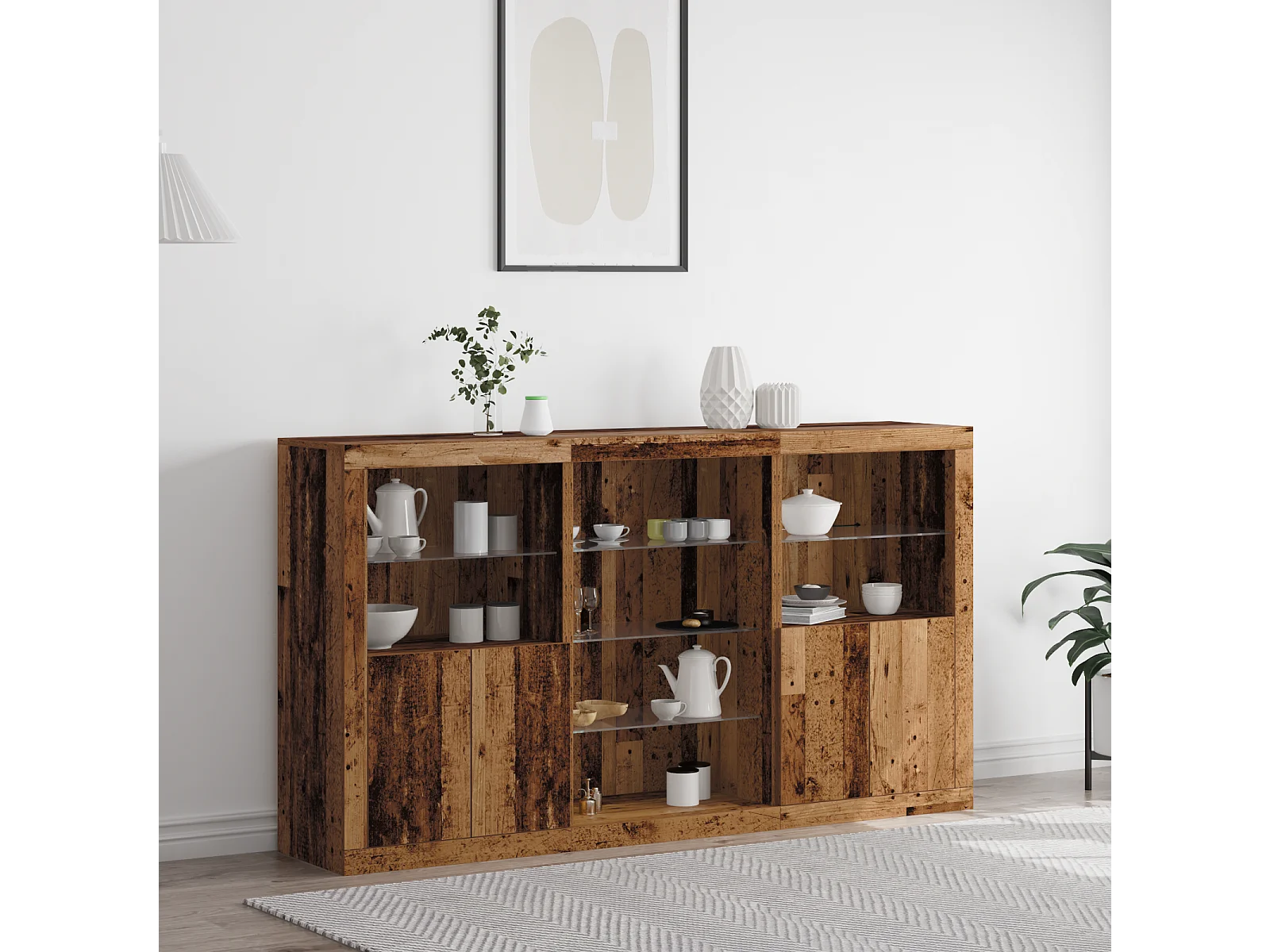 Buffet | Bahut | Meuble de rangement avec lumières LED Bois vieilli 181.5x37x100 cm Bois d'ingénierie