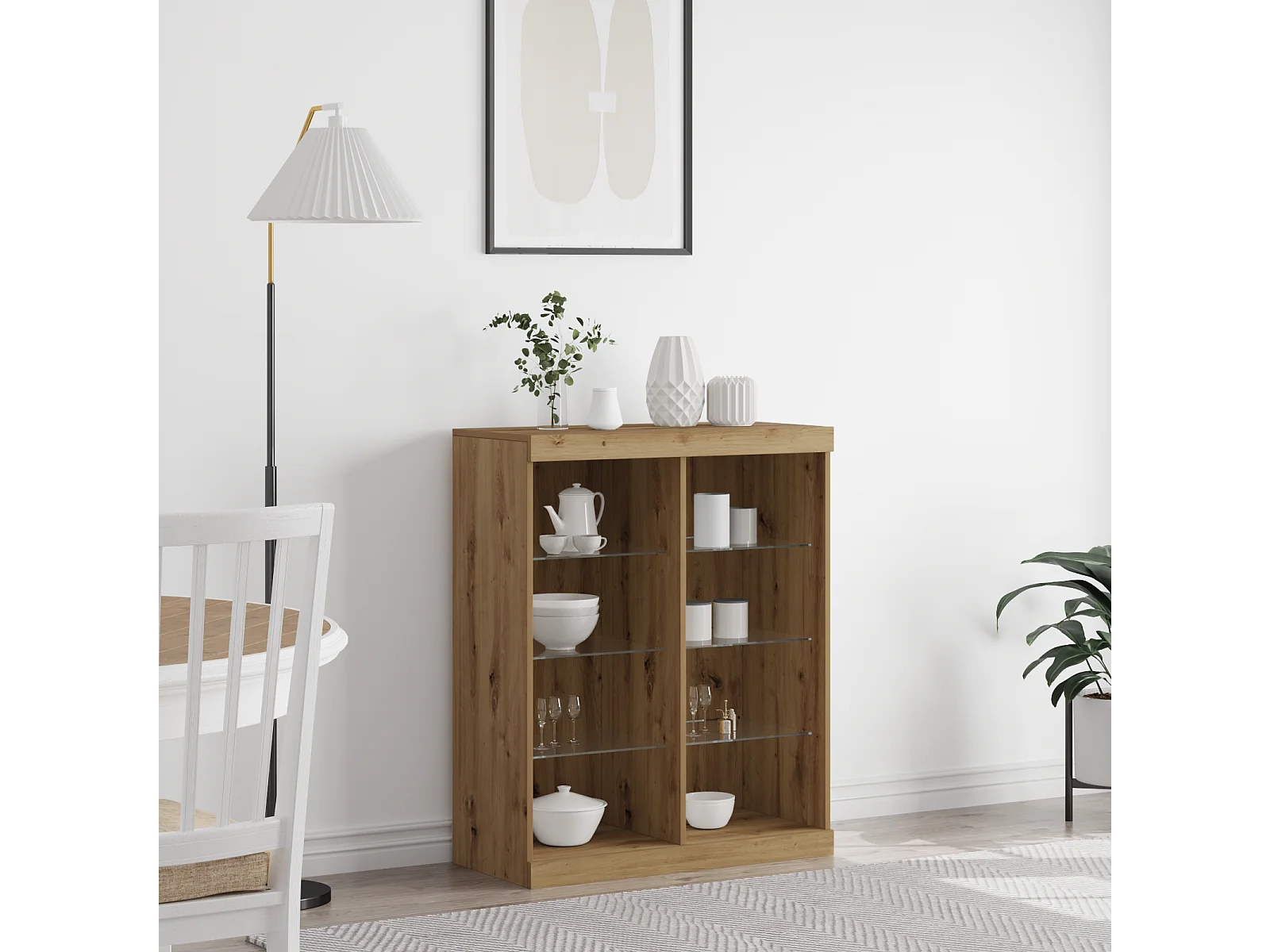 Buffet | Bahut | Meuble de rangement avec lumières LED chêne sonoma 81x37x67 cm