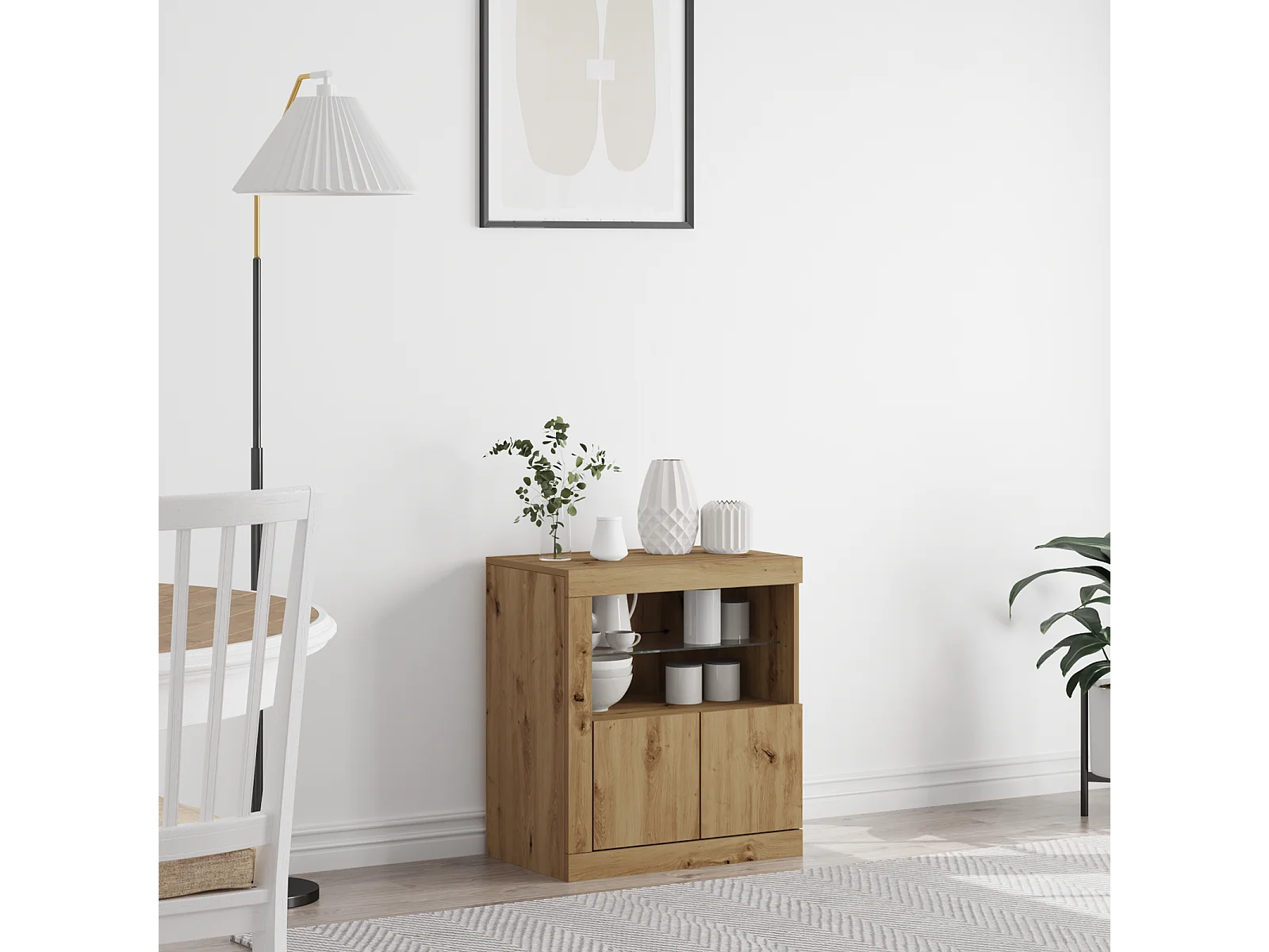 Buffet | Bahut | Meuble de rangement avec lumières LED Chêne artisanal 60,5x37x67 cm