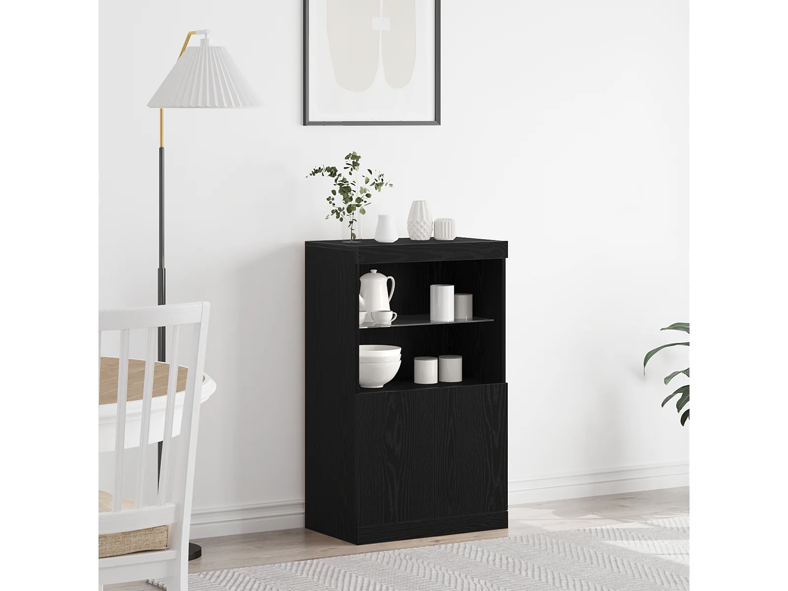 Buffet | Bahut | Meuble de rangement avec lumières LED Noir Chêne 60,5x37x67 cm