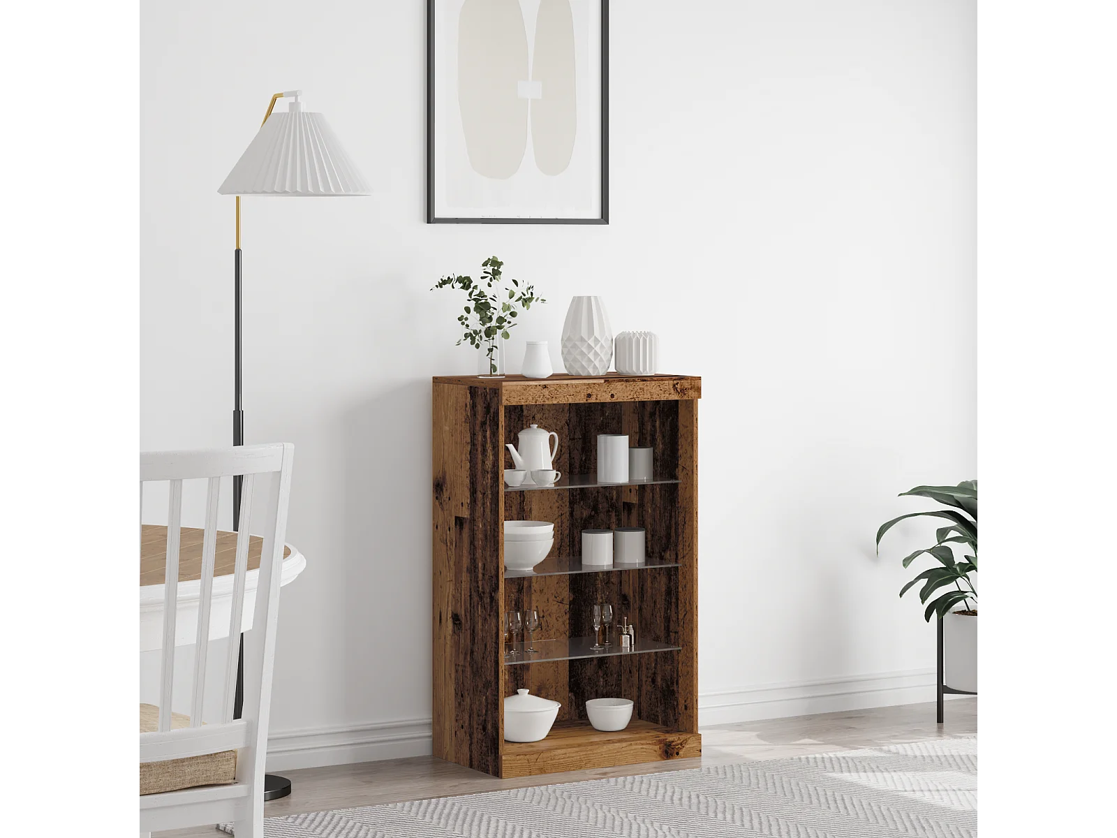 Buffet | Bahut | Meuble de rangement avec lumières LED Bois ancien 60,5x37x67 cm