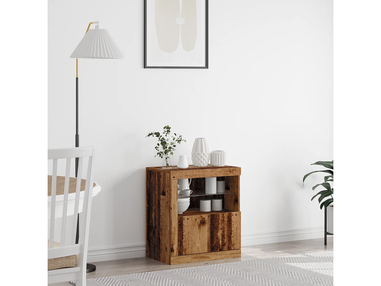 Buffet | Bahut | Meuble de rangement avec éclairage LED en bois ancien 41x37x67 cm