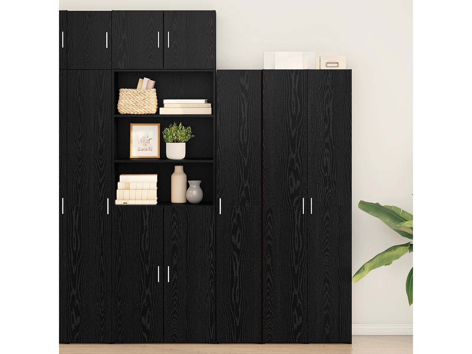 Buffet | Bahut | Meuble de rangement en chêne noir 50x42.5x185 cm en bois reconstitué