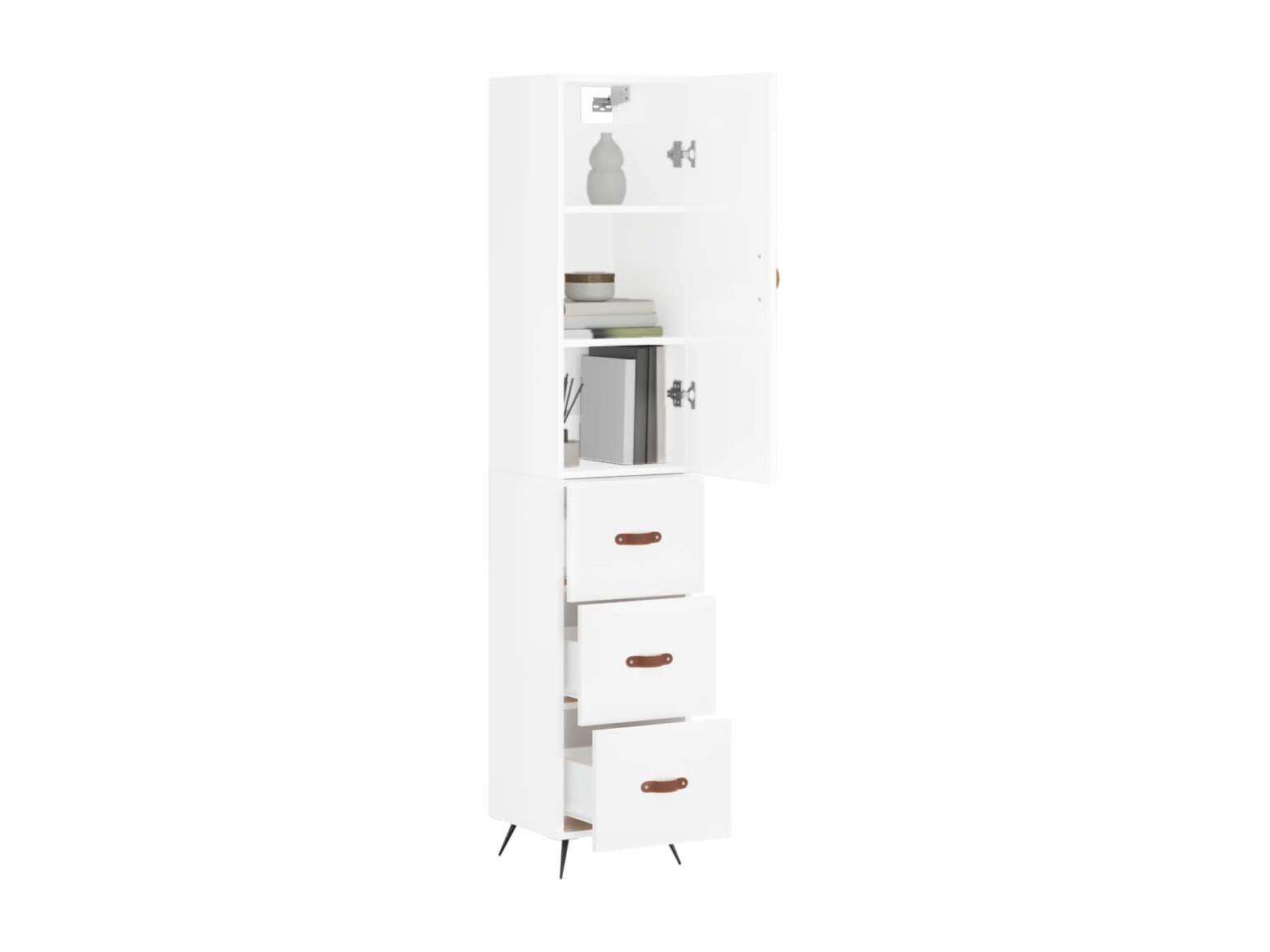 Buffet | Bahut | Meuble de rangement haut Blanc brillant 34,5x34x180 cm Bois d'ingénierie