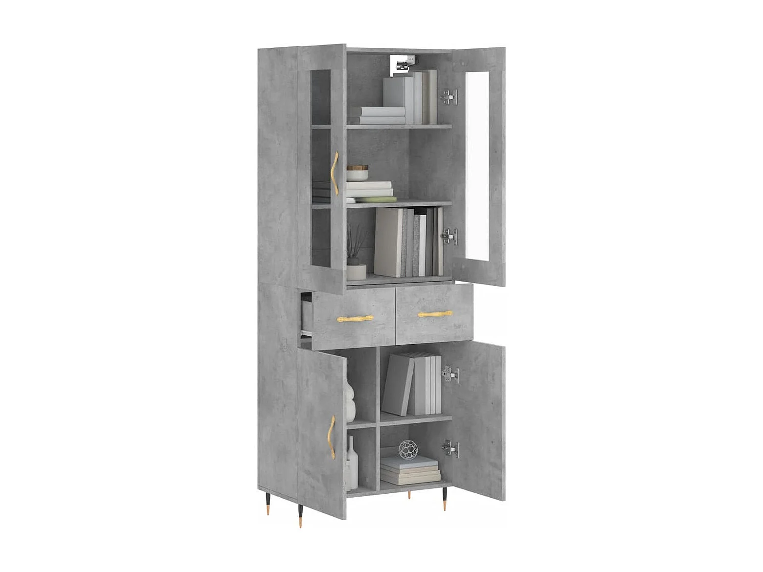 Buffet | Bahut | Meuble de rangement haut Gris béton 69,5x34x180 cm Bois d'ingénierie