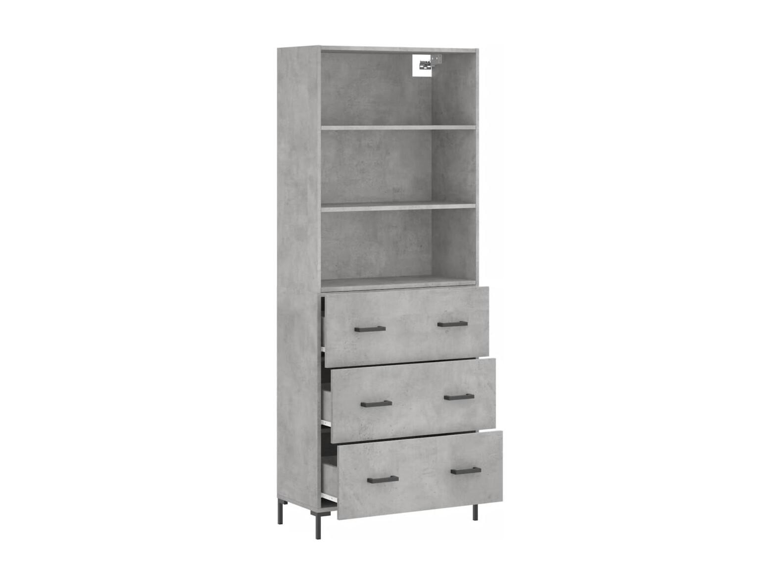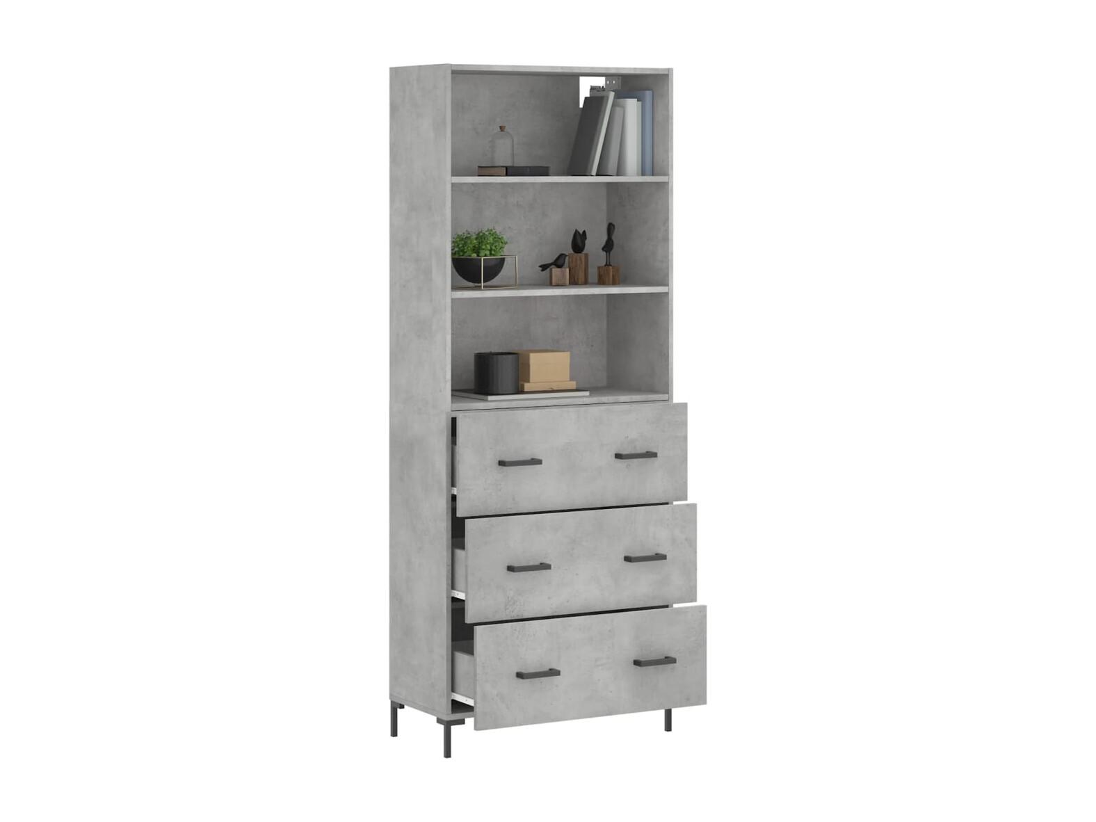 Buffet | Bahut | Meuble de rangement haut Gris béton 69,5x34x180 cm Bois d'ingénierie