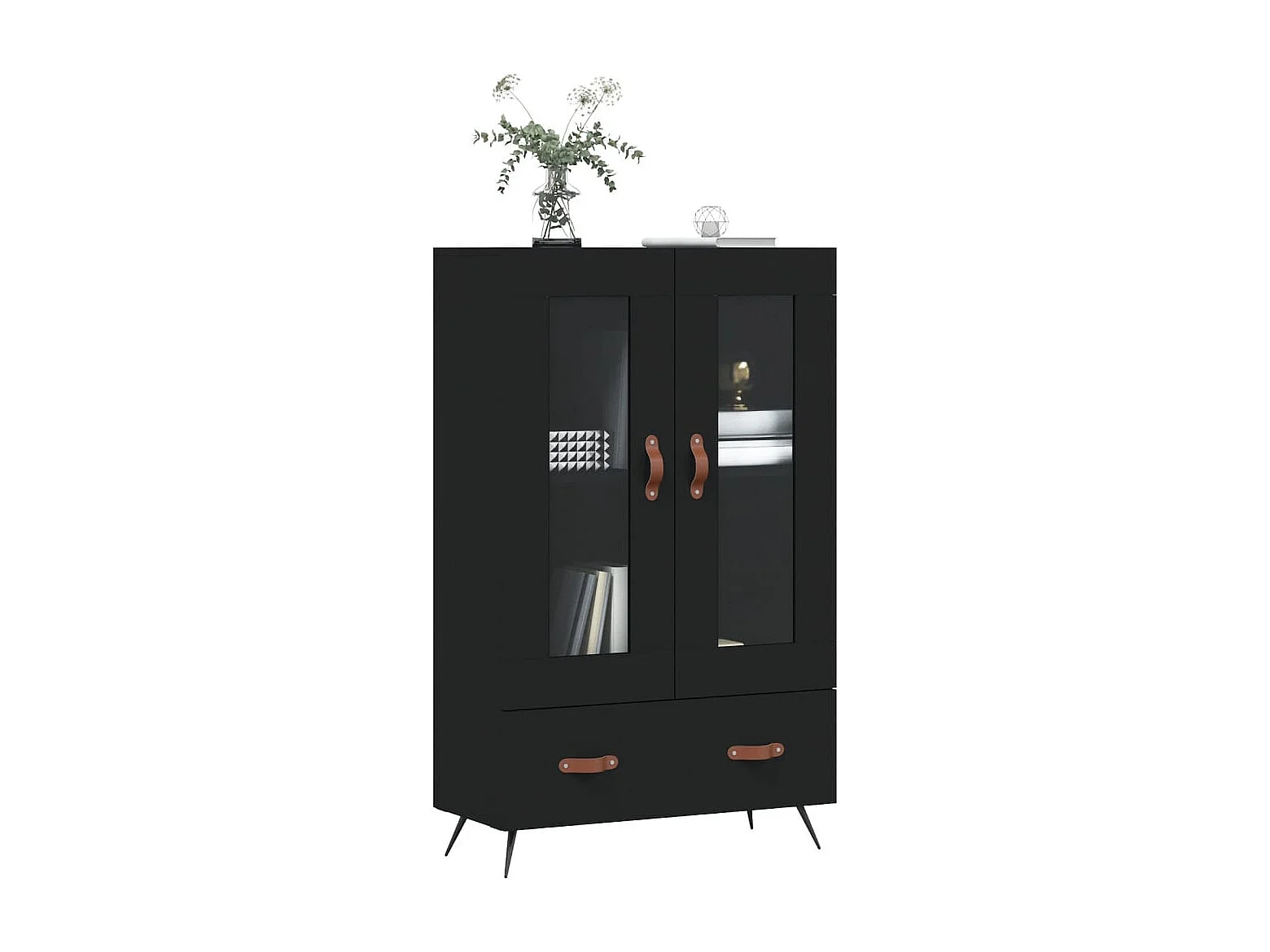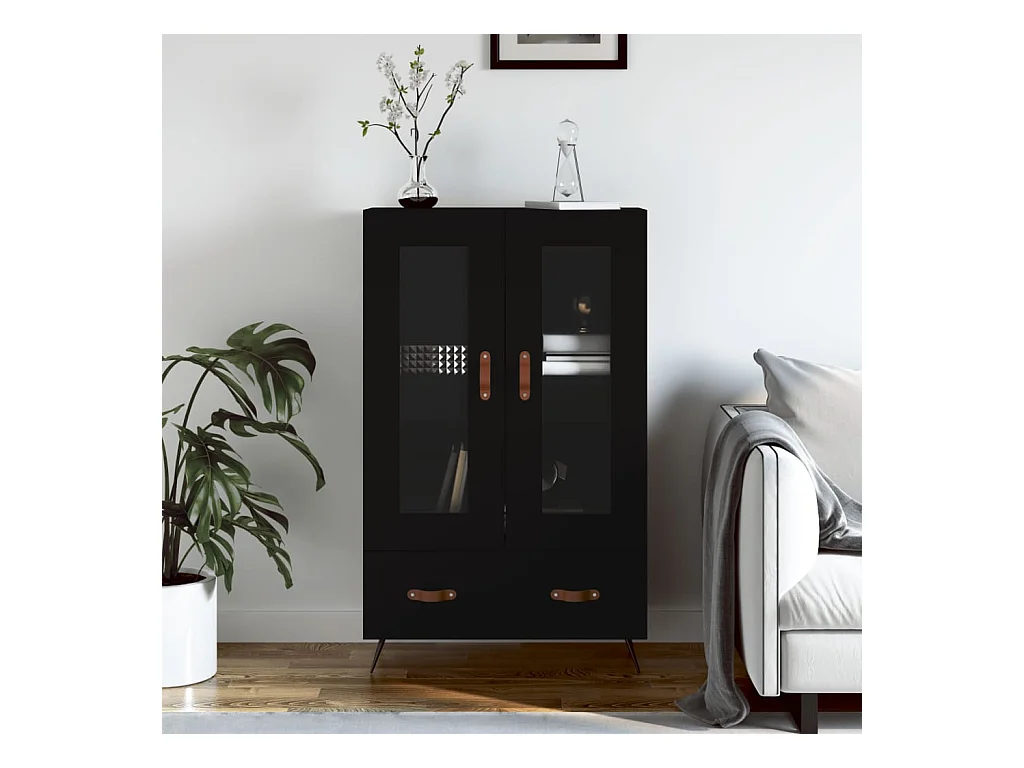 Buffet haut noir 69,5x31x115 cm bois d'ingénierie