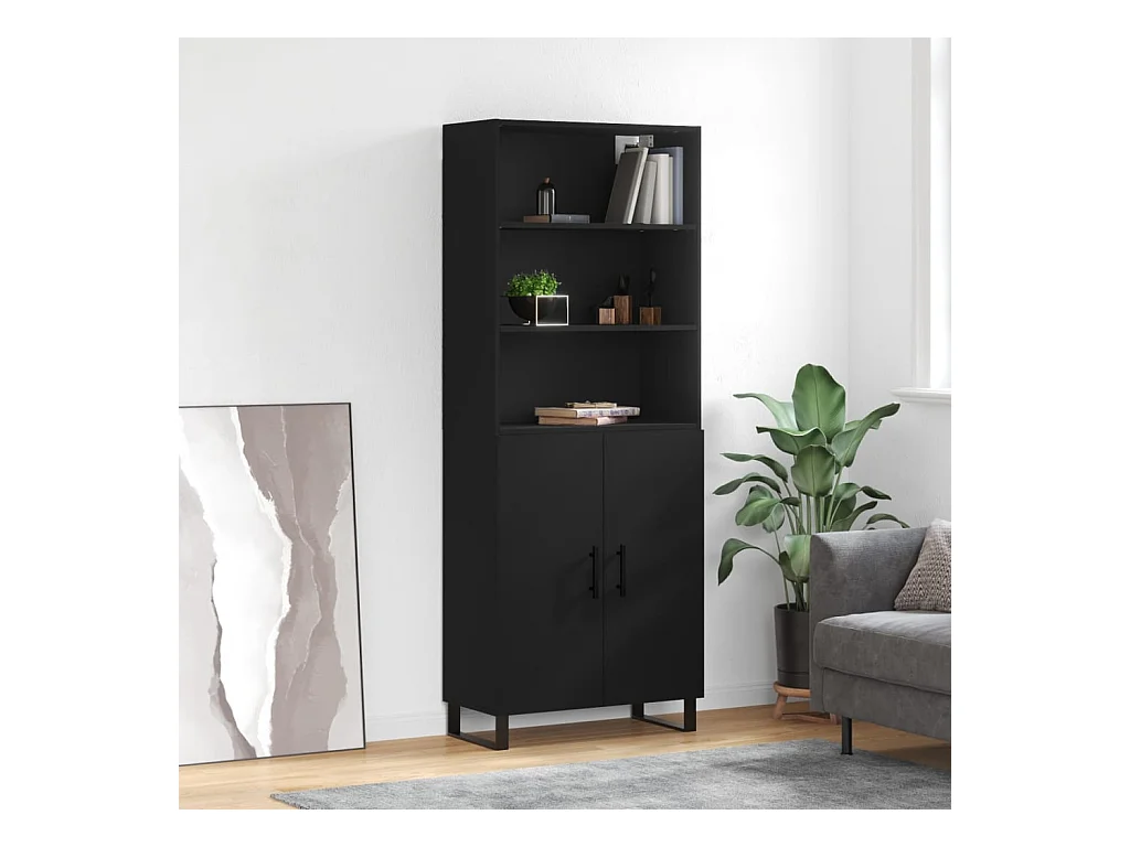 Buffet | Bahut | Meuble de rangement haut Noir 69,5x34x180 cm Bois d'ingénierie