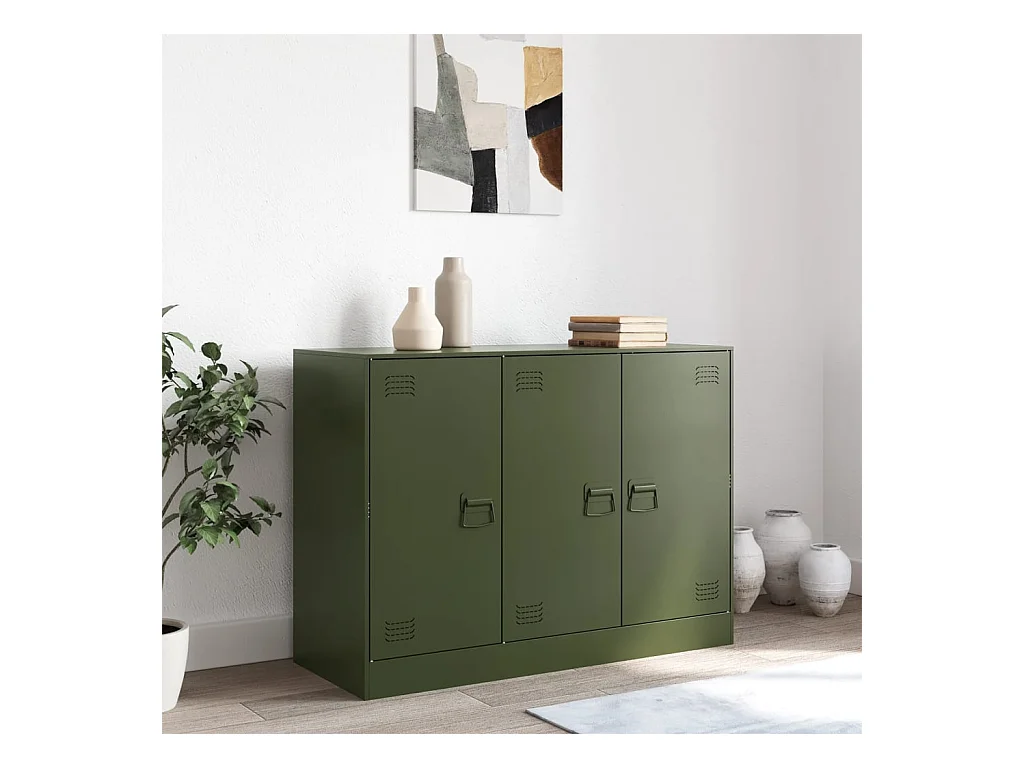 Buffet | Bahut | Meuble de rangement vert olive 99x39x73 cm acier