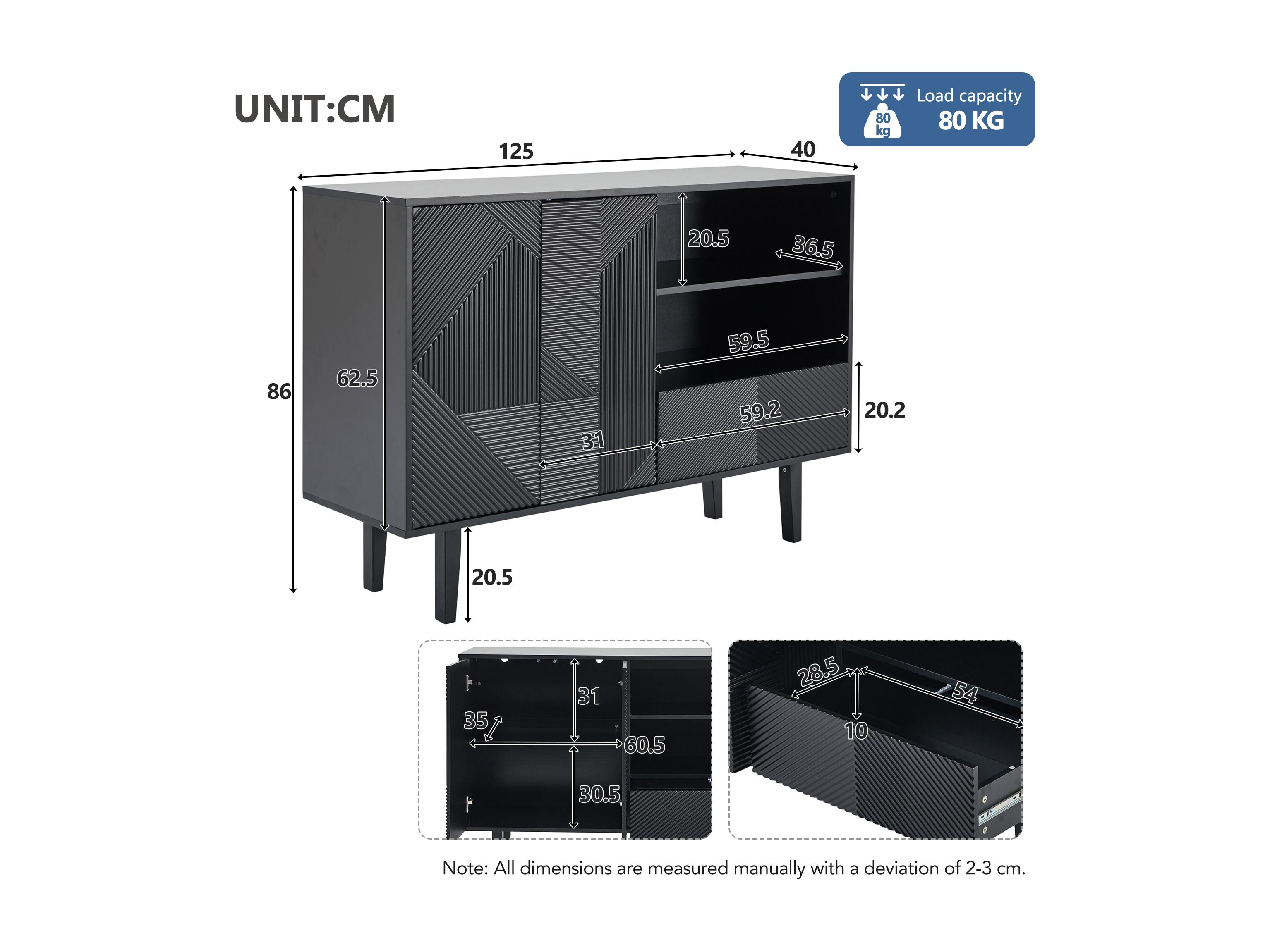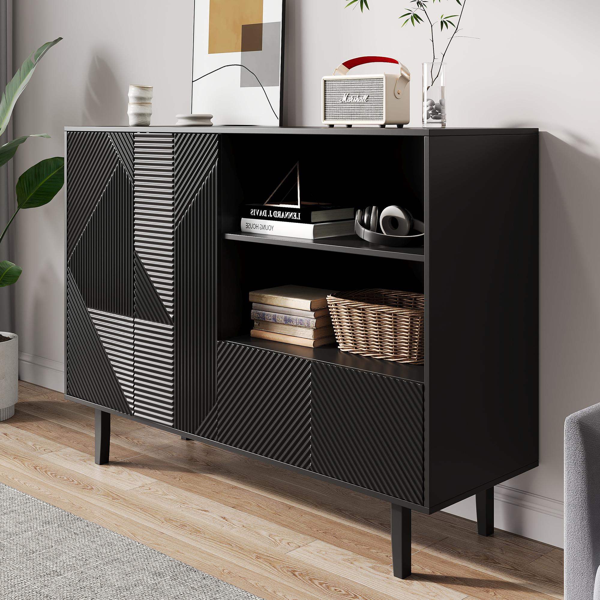 Buffet bahut Moderne avec 2 portes, 1 tiroir, 2 étagères de de rangement, Buffet de Salon, Buffet Bahut, Panneau noir