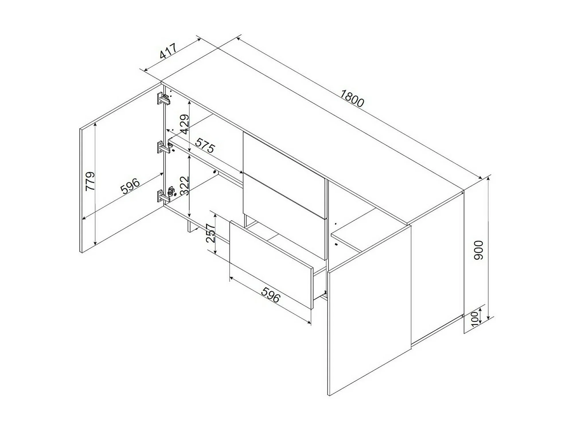 Buffet Barcelos, 2 Étagères, 41,5x180x90h cm Beige, Bahut