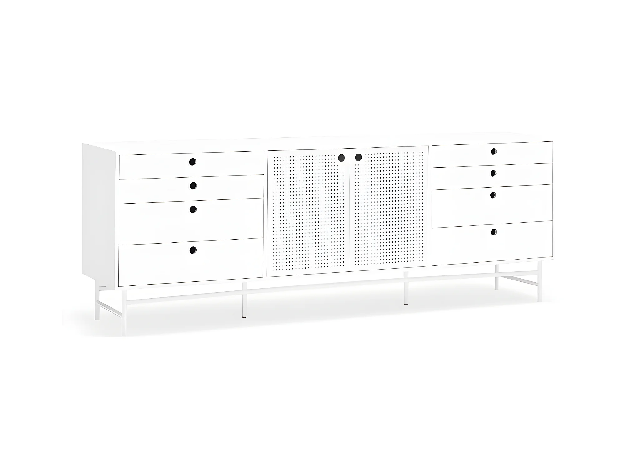 Buffet bas 212cm en bois et métal perforé PUNTO