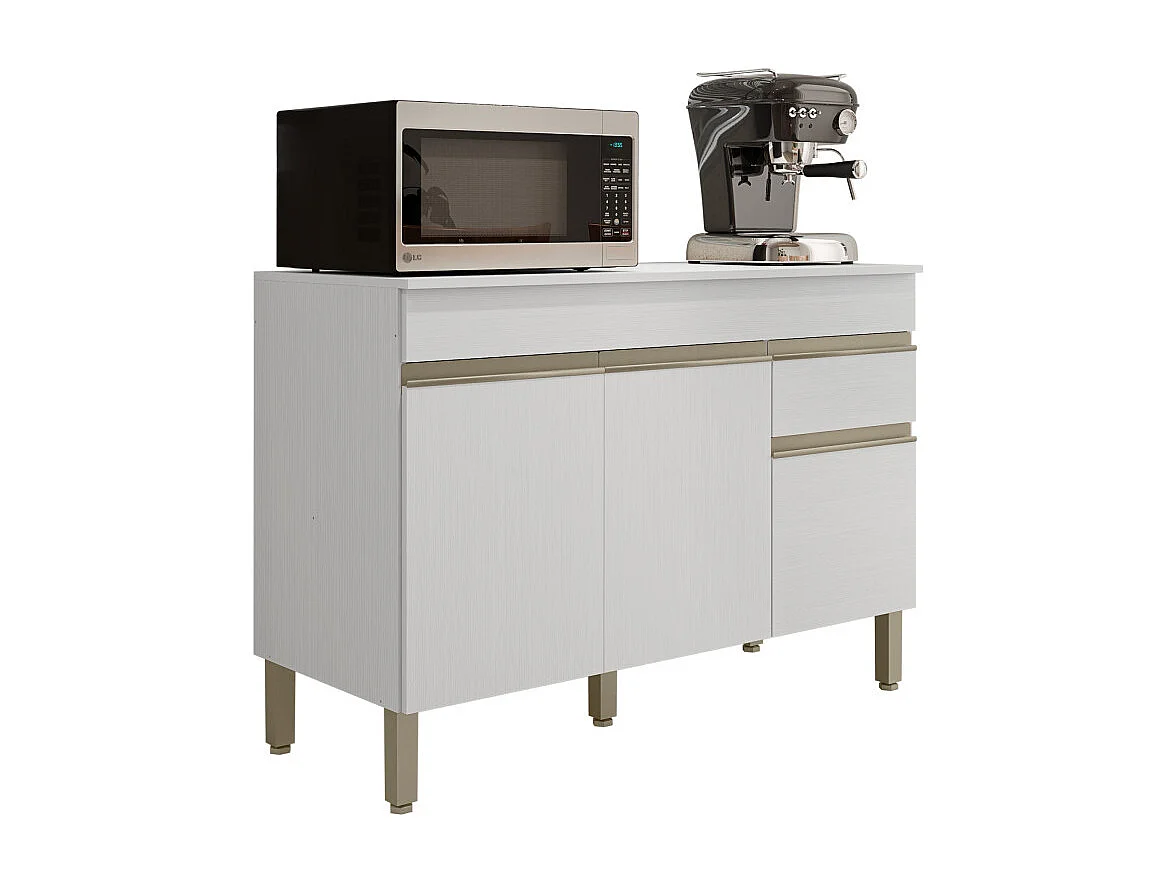 Buffet Bas 3 Portes 1 Tiroir Blanc 5 Niches L 120 H 86 P 53.3 cm