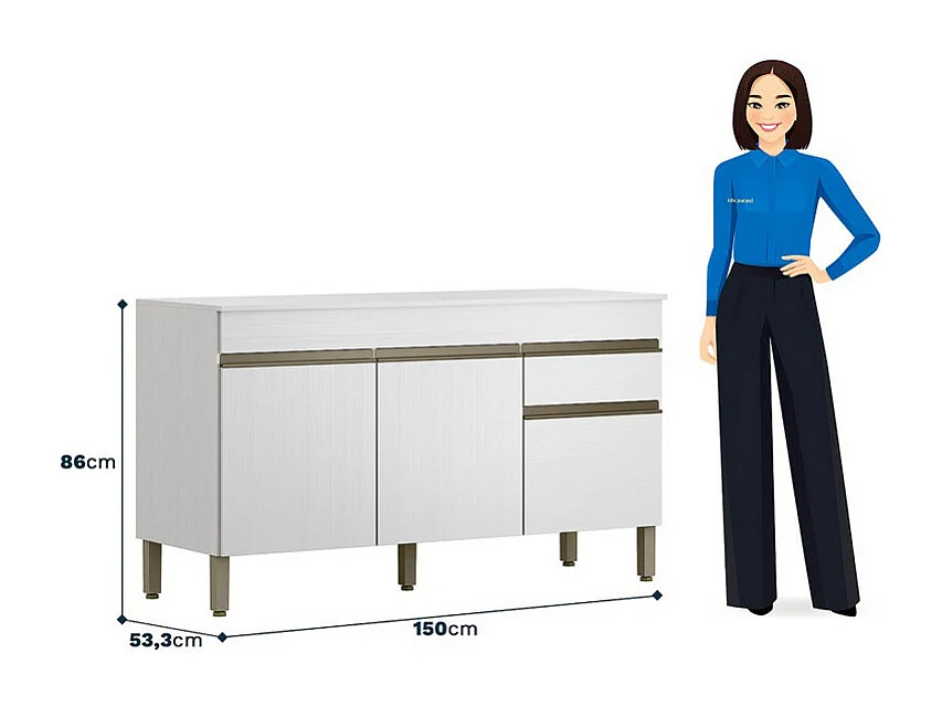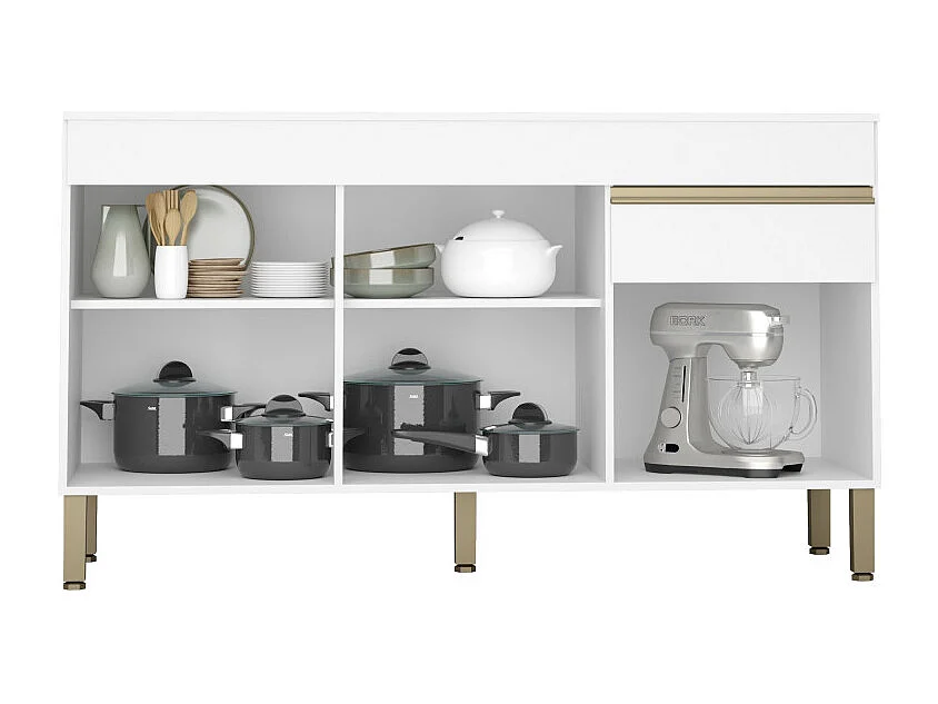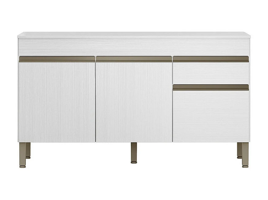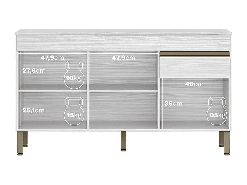 Buffet Bas 3 Portes 1 Tiroir Blanc 5 Niches L 150 H 86 P 53.3 cm