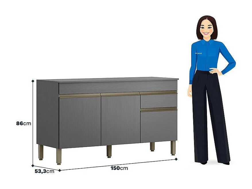Buffet Bas 3 Portes 1 Tiroir Gris 5 Niches L 150 H 86 P 53.3 cm