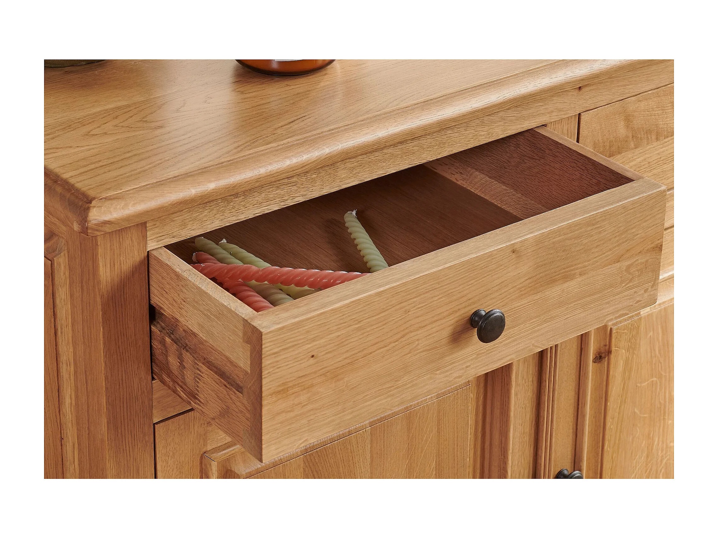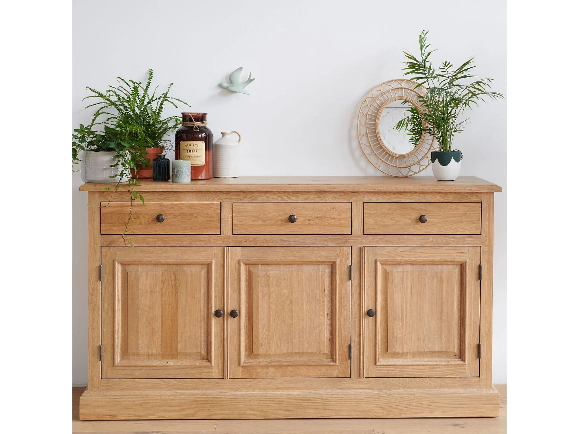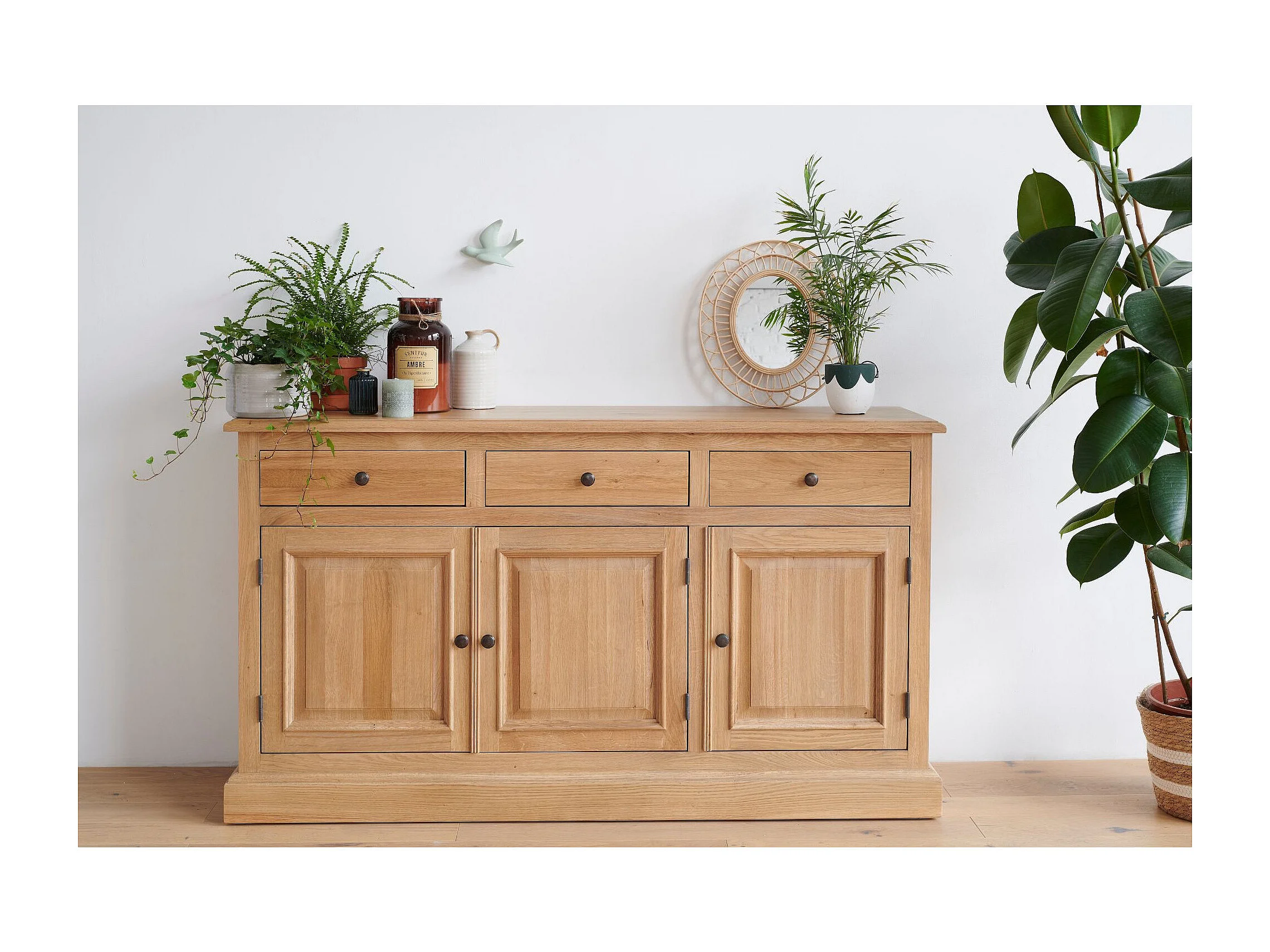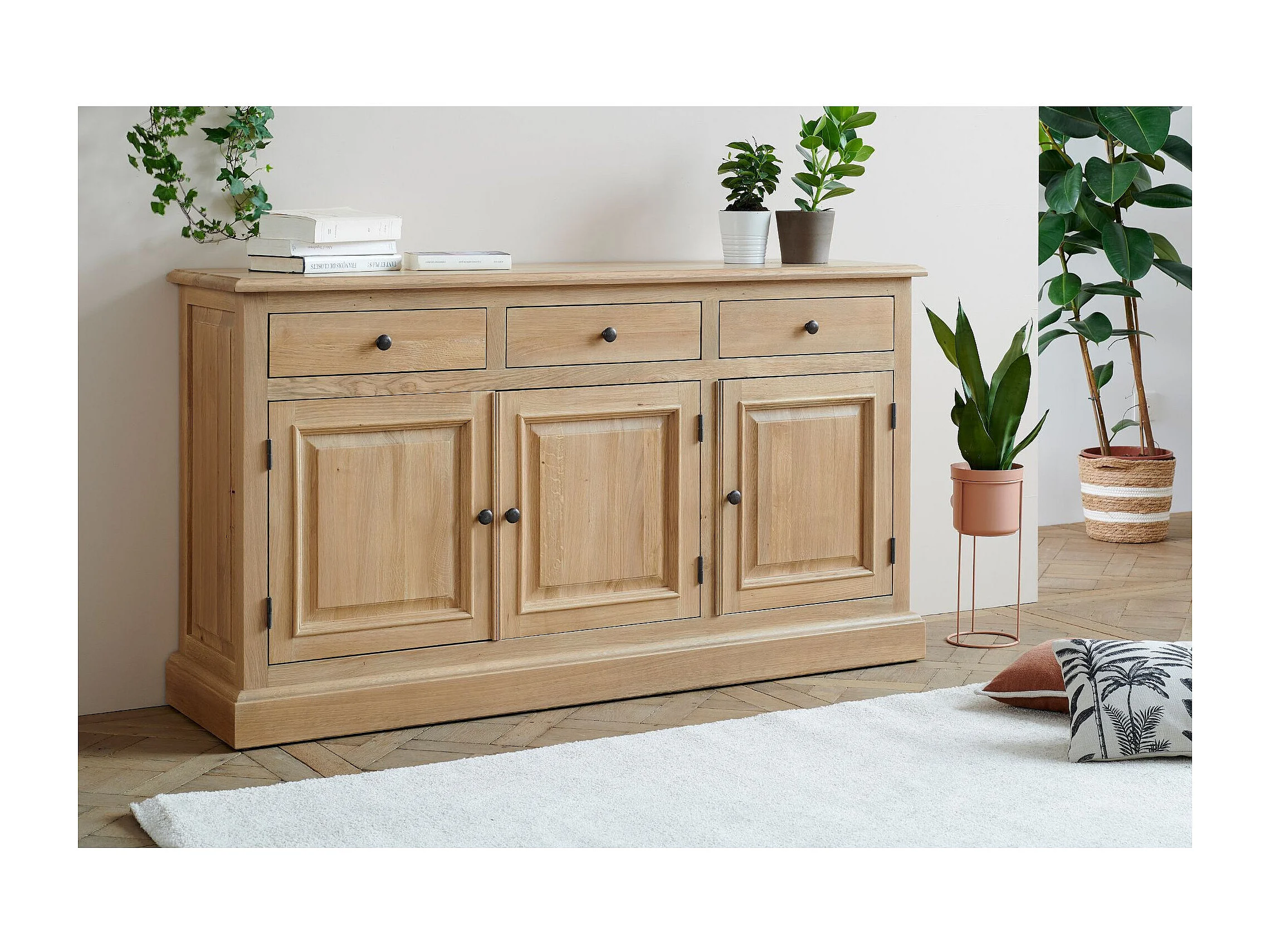 Buffet bas 3 portes 3 tiroirs en chêne massif naturel - VICTORIA