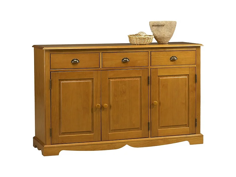 Buffet Bas 3 Portes 3 Tiroirs Pin Miel de Style Anglais L 146.6 H 89.6 P 42.5 cm