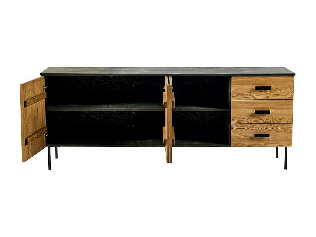 Buffet bas 3 portes en bois bicolore, façade ondulée TARAN