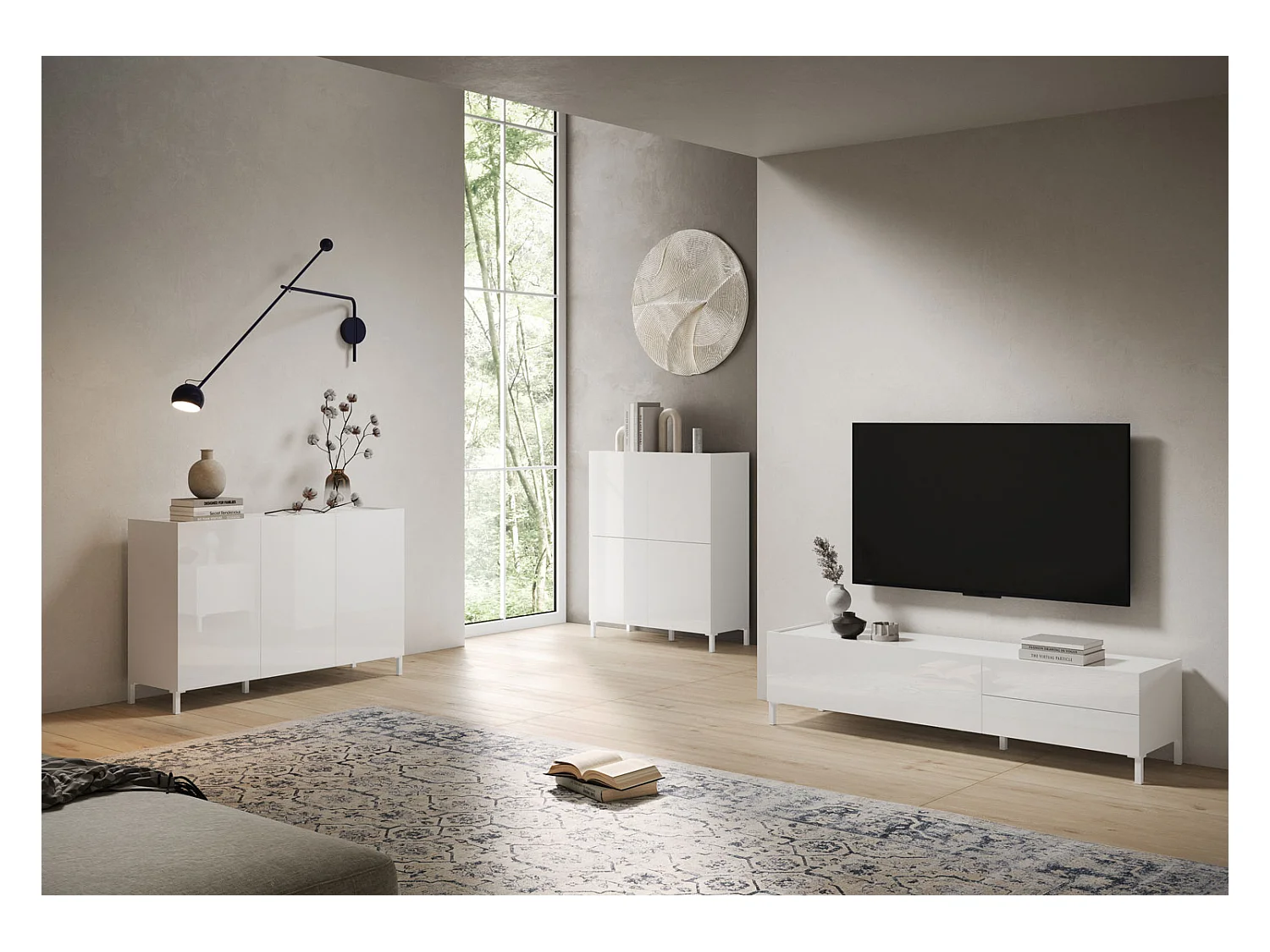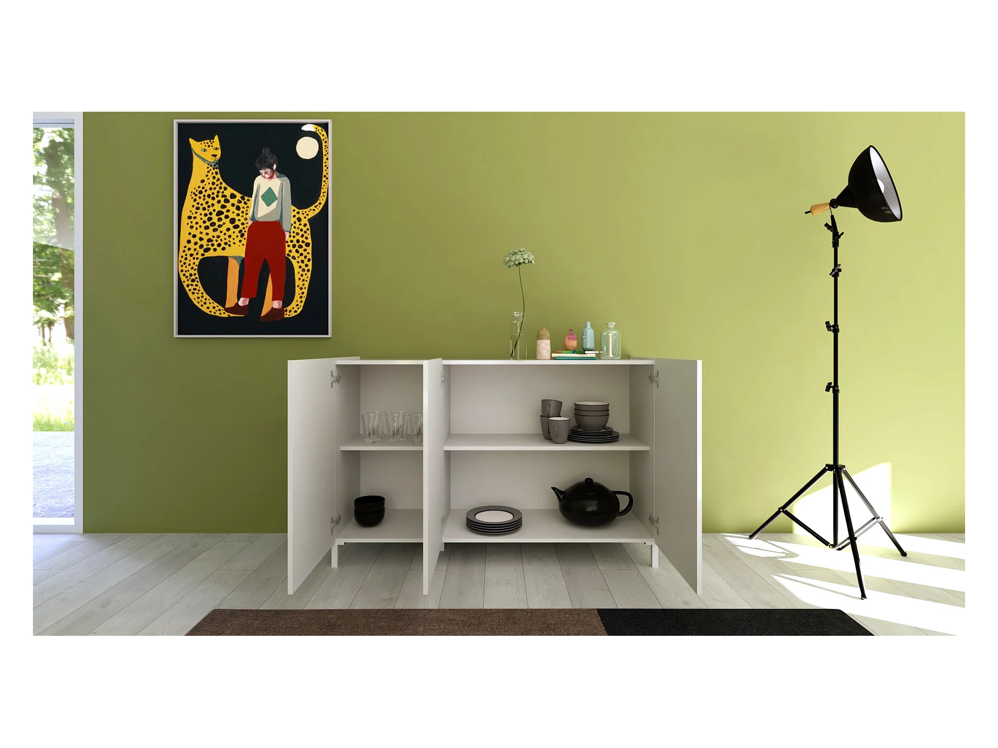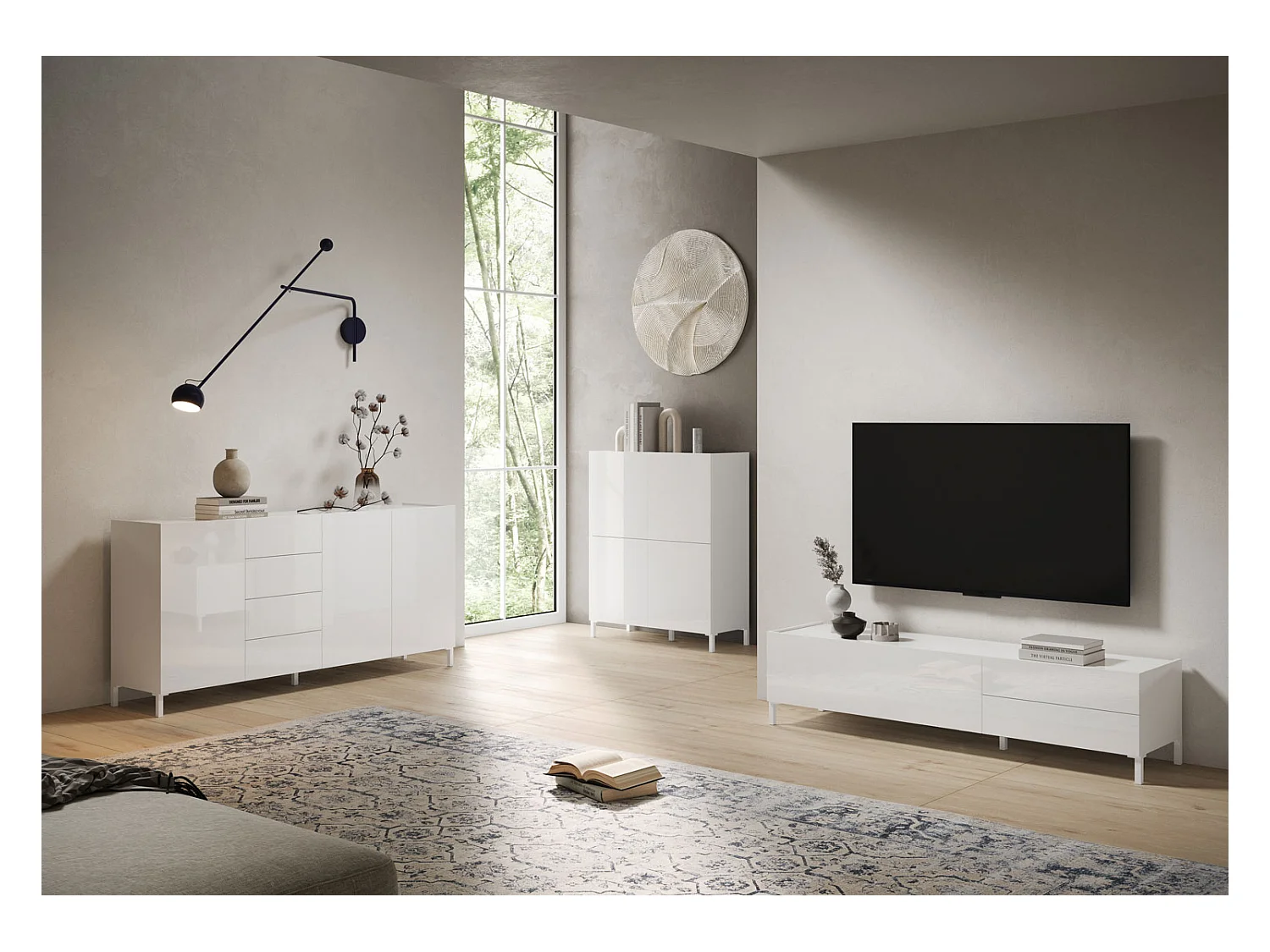 Buffet bas 3 portes et 4 tiroirs 130x40x84 cm Solaria blanc brillant