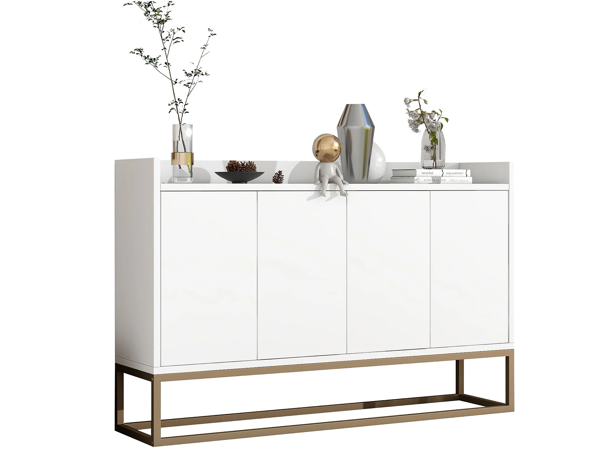Buffet bas 4 portes - Bois en MDF et pièds en métal - Style moderne - Coloris blanc - 120 x 30 x 80 cm