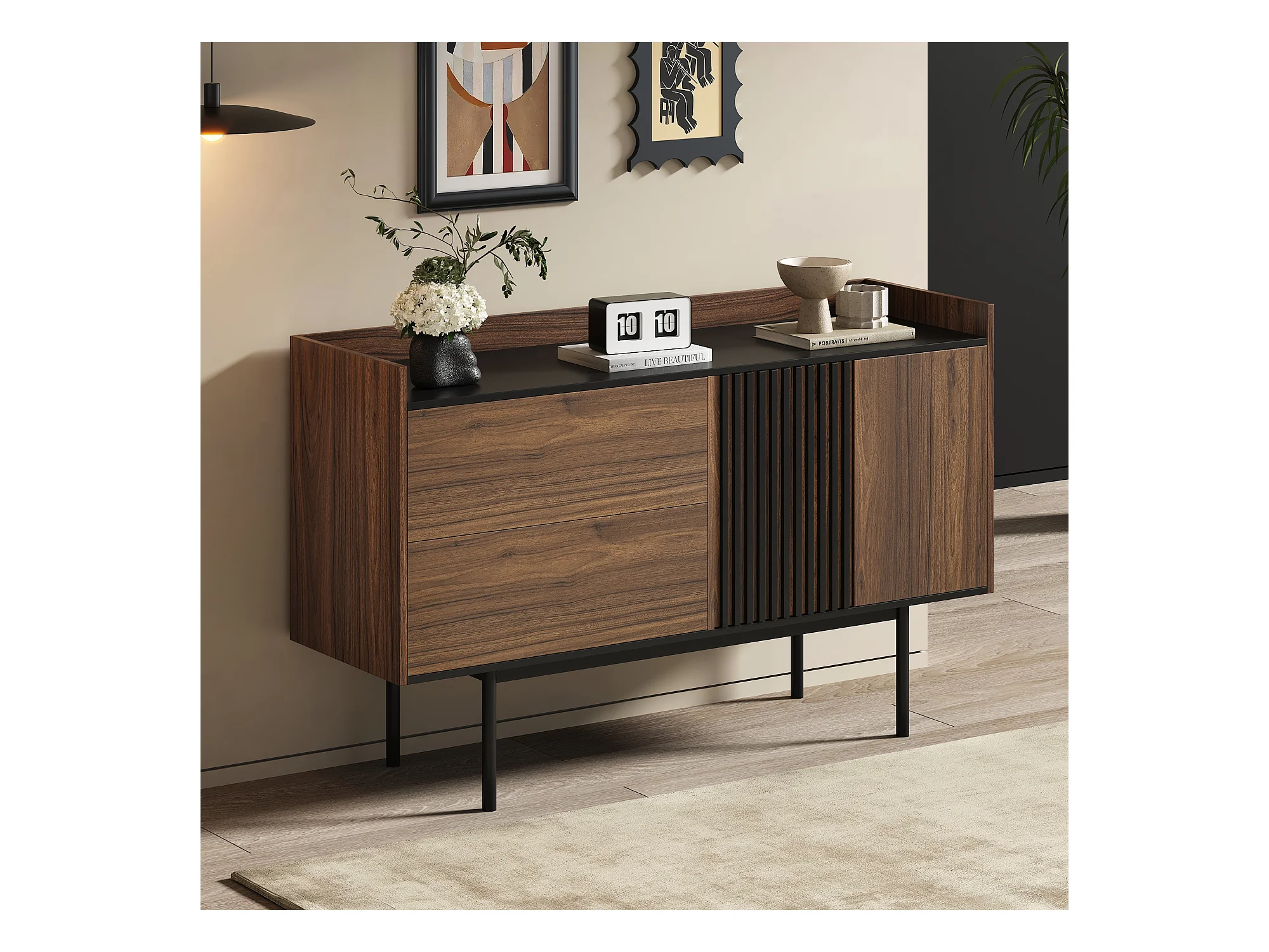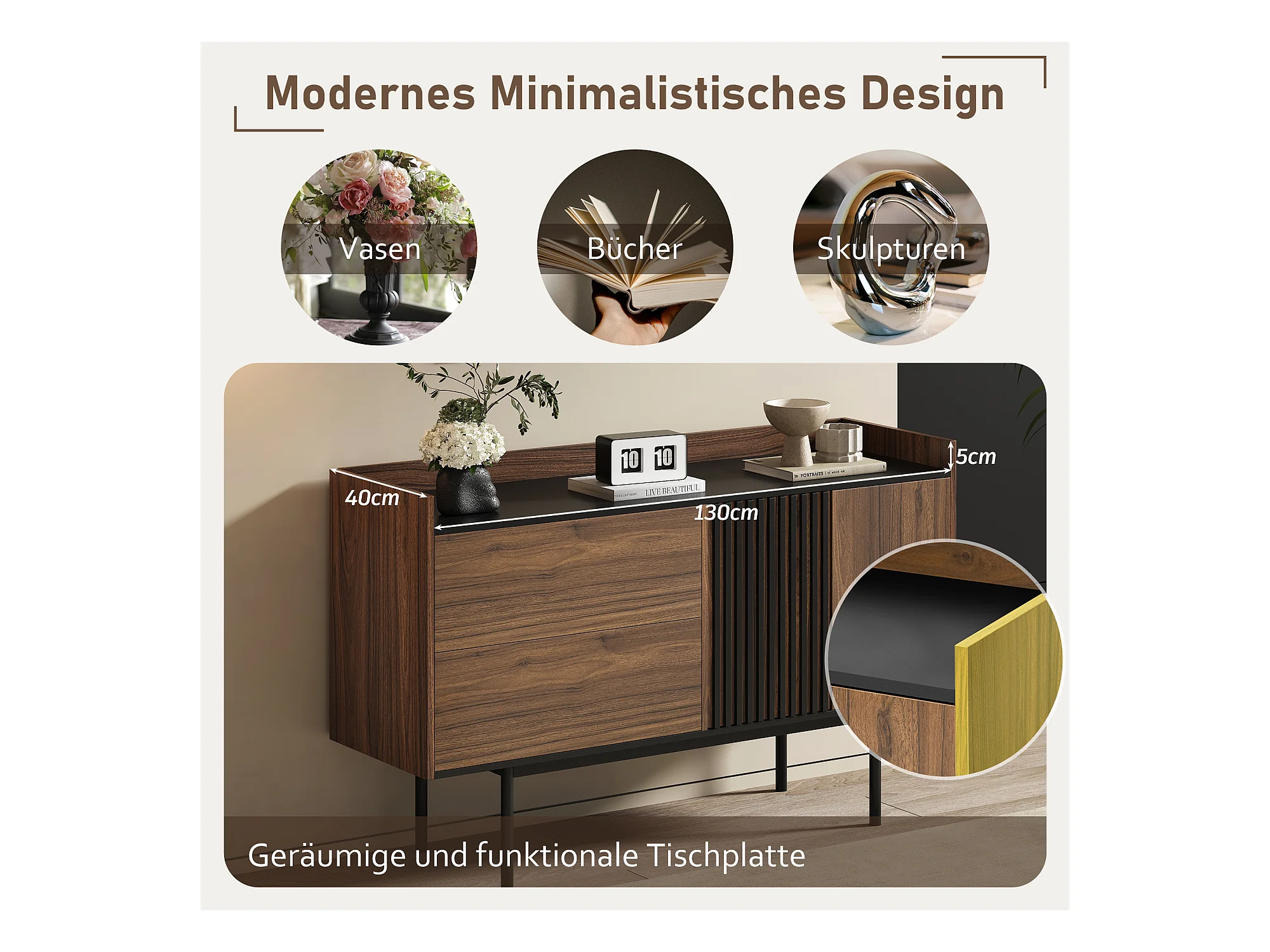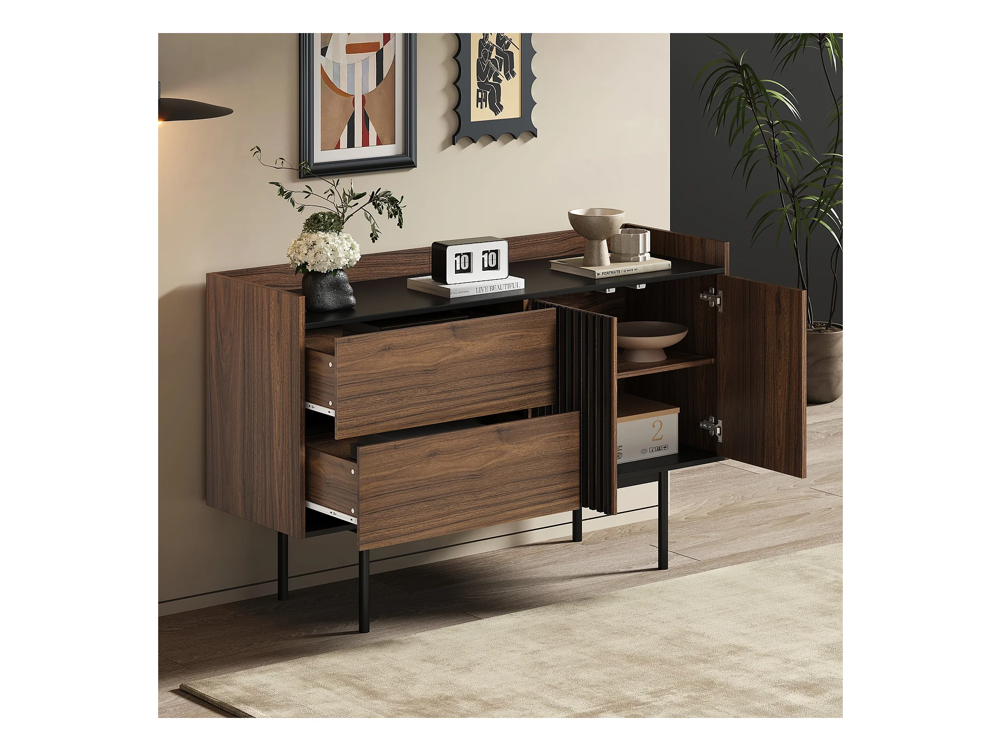 Buffet bas avec 2 tiroirs et 2 portes - 130 x 40 x 80.5 cm - étagère réglable - Bois MDF - Noyer + noir