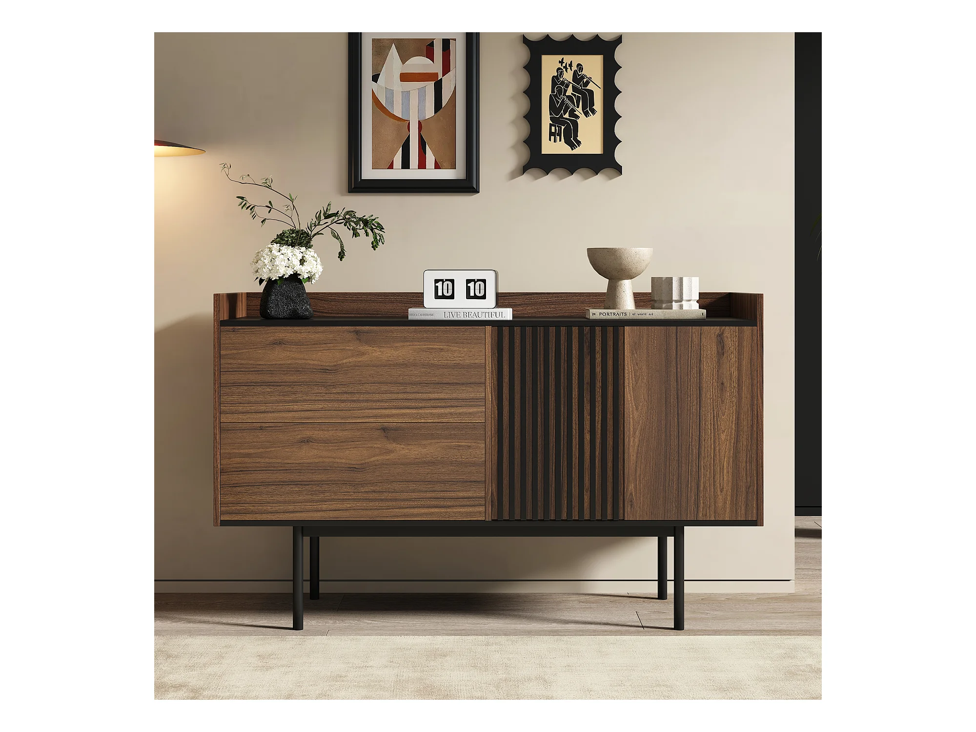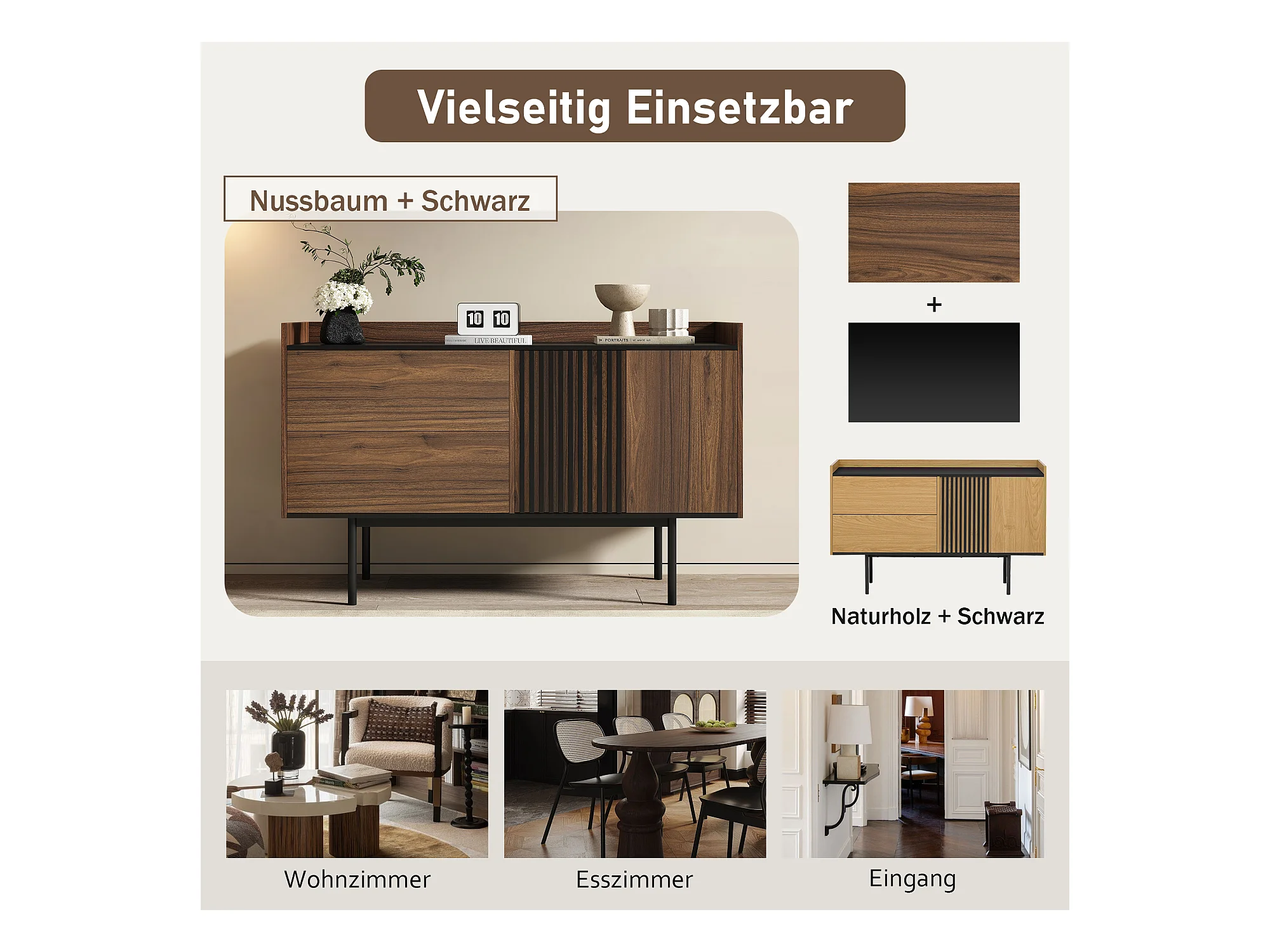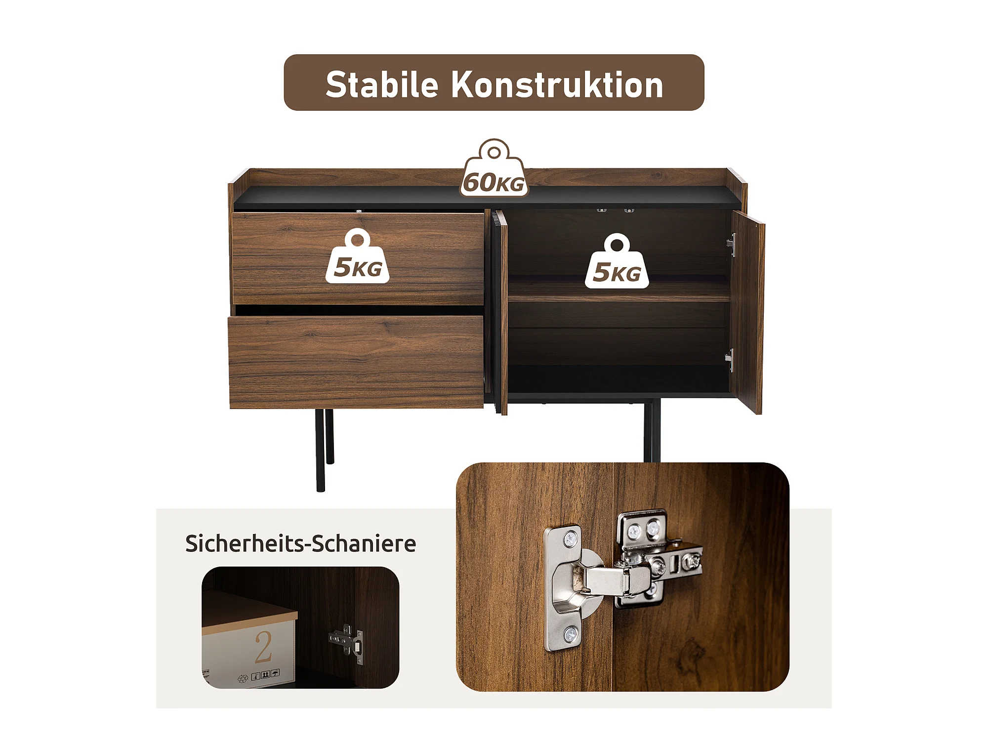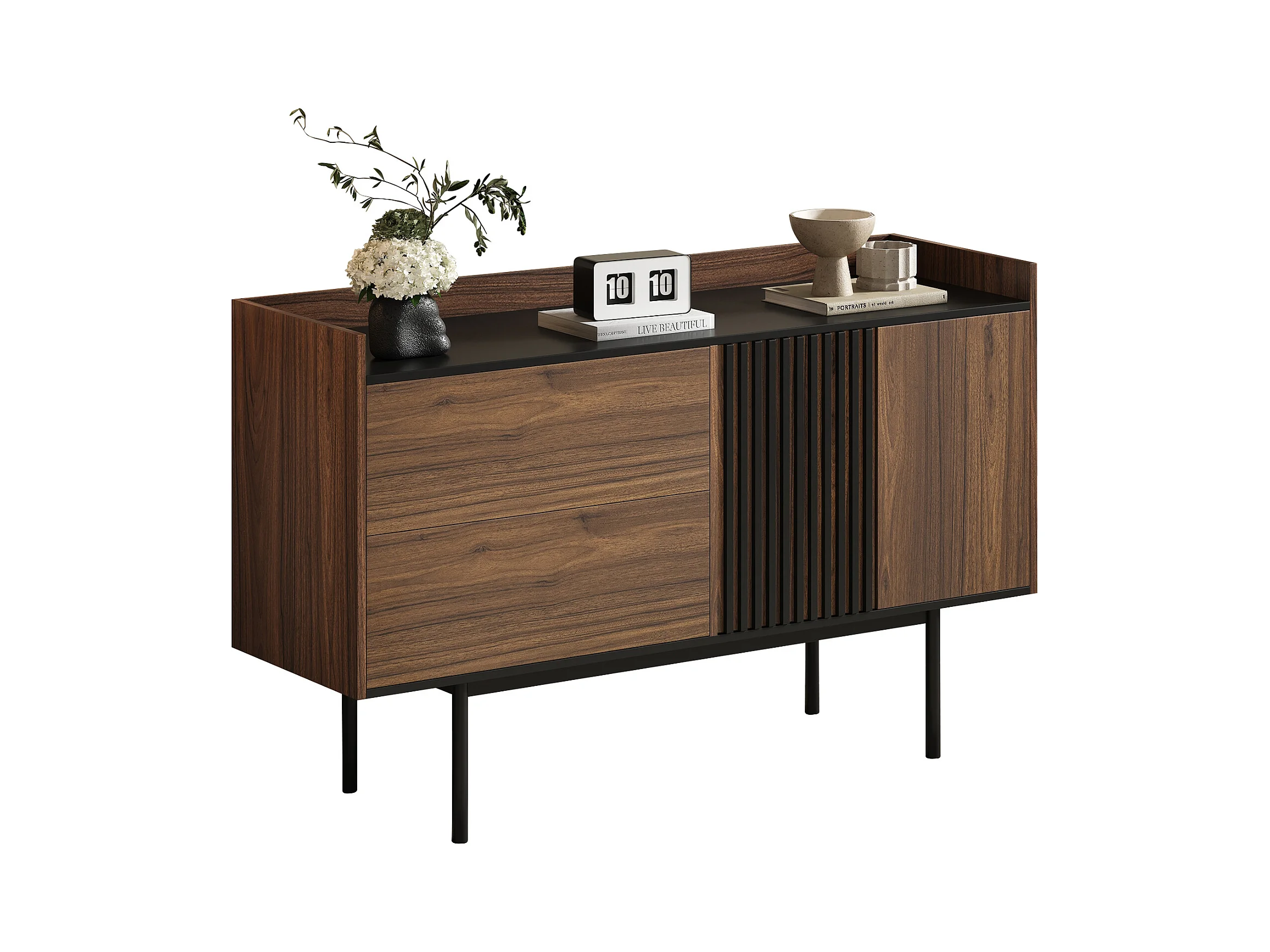 Buffet bas avec 2 tiroirs et 2 portes - 130 x 40 x 80.5 cm - étagère réglable - Bois MDF - Noyer + noir