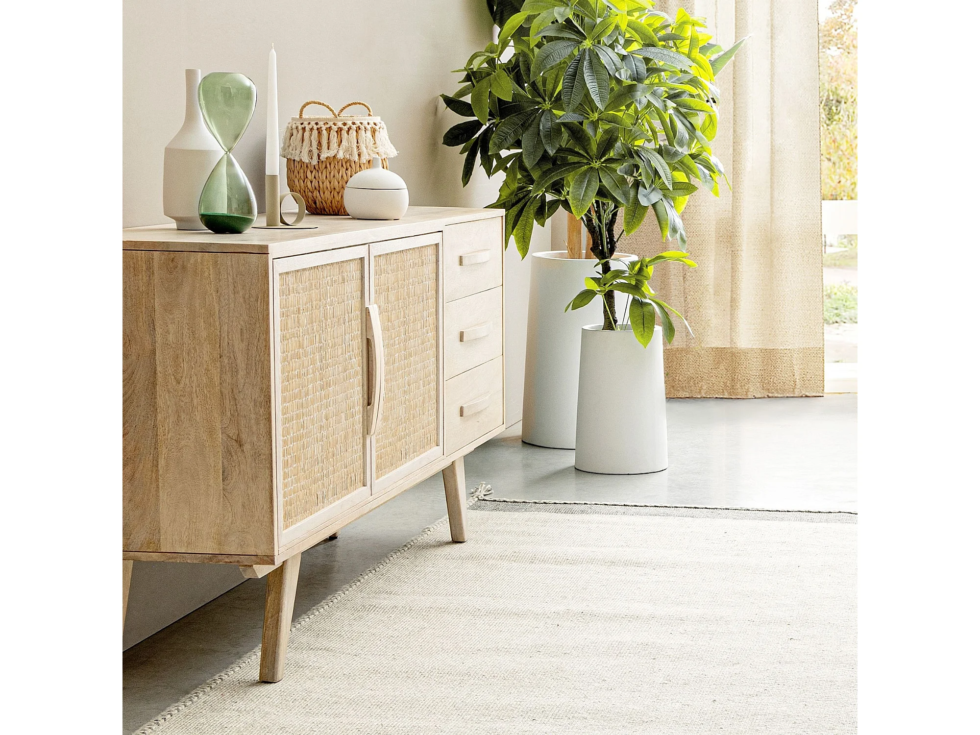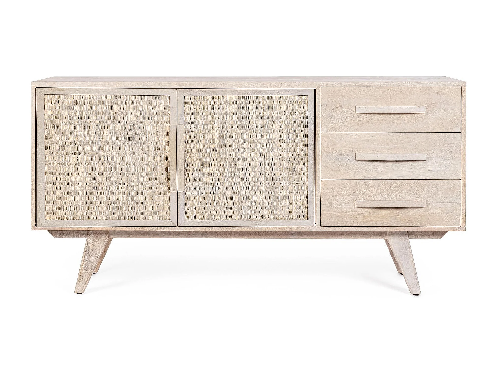 Buffet bas en bois de manguier blanchi 2 portes 3 tiroirs - SHANNA