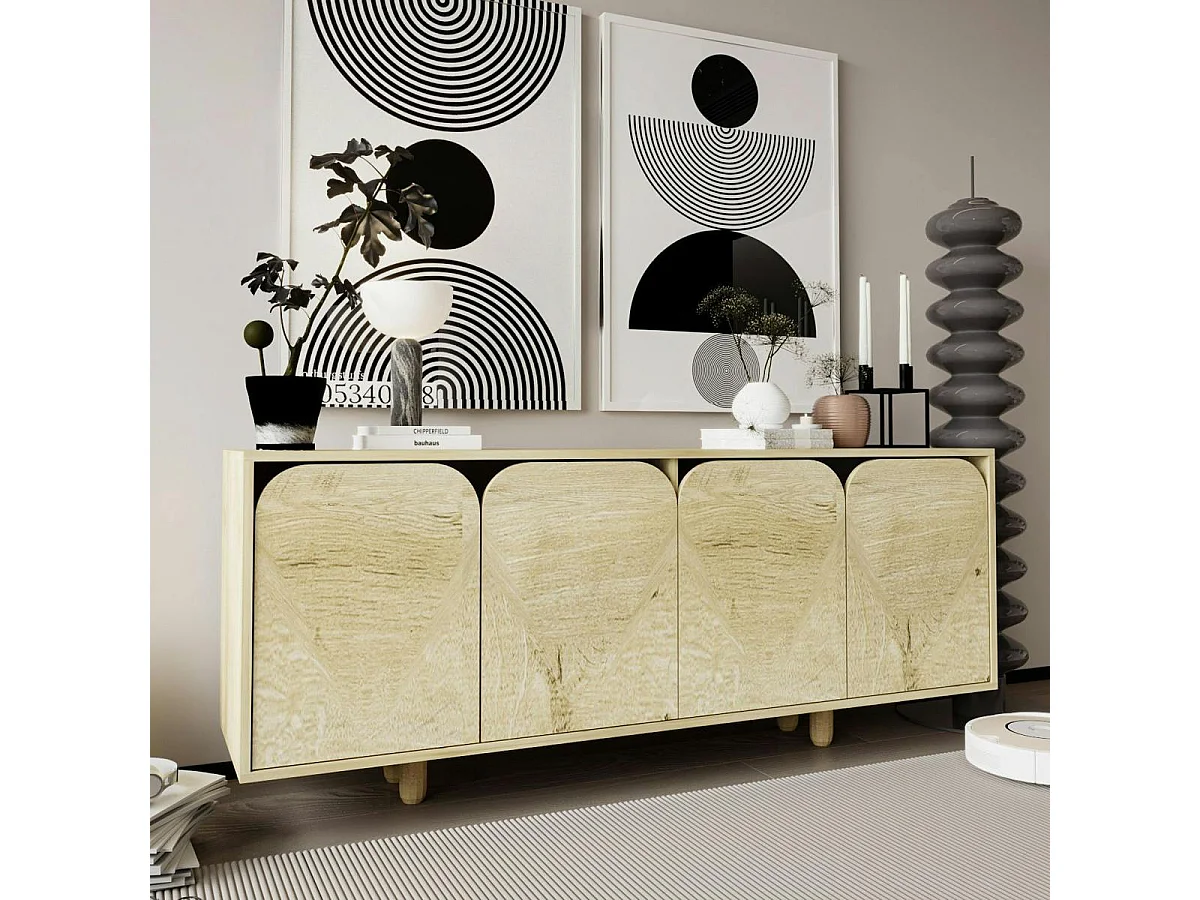 Buffet bas moderne effet bois 4 portes courbes VAREN
