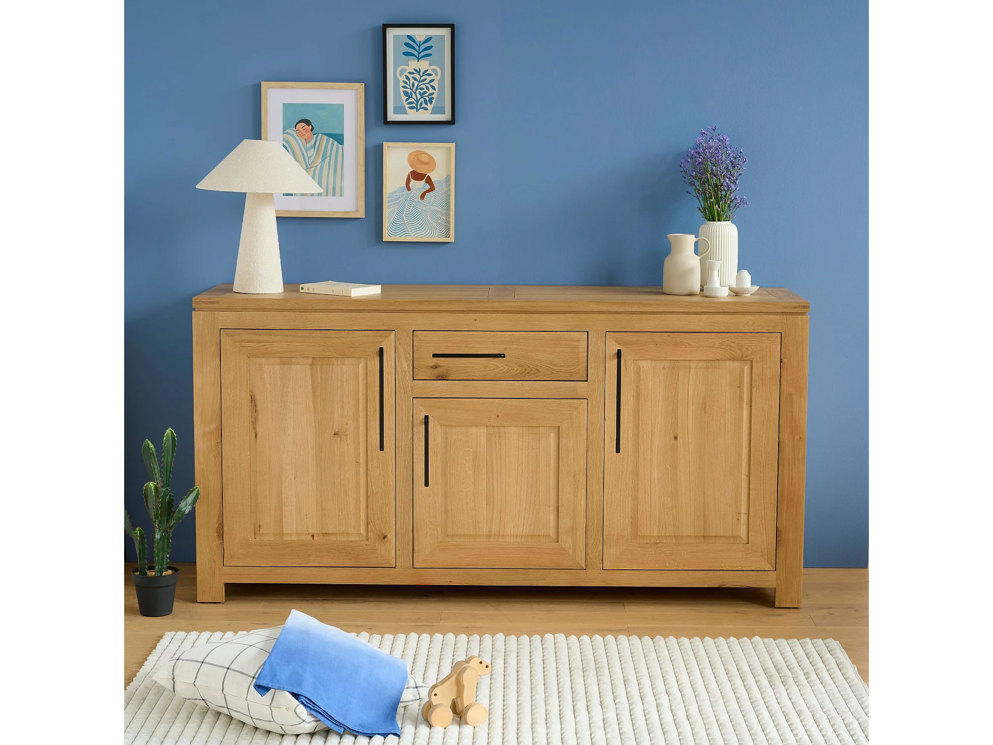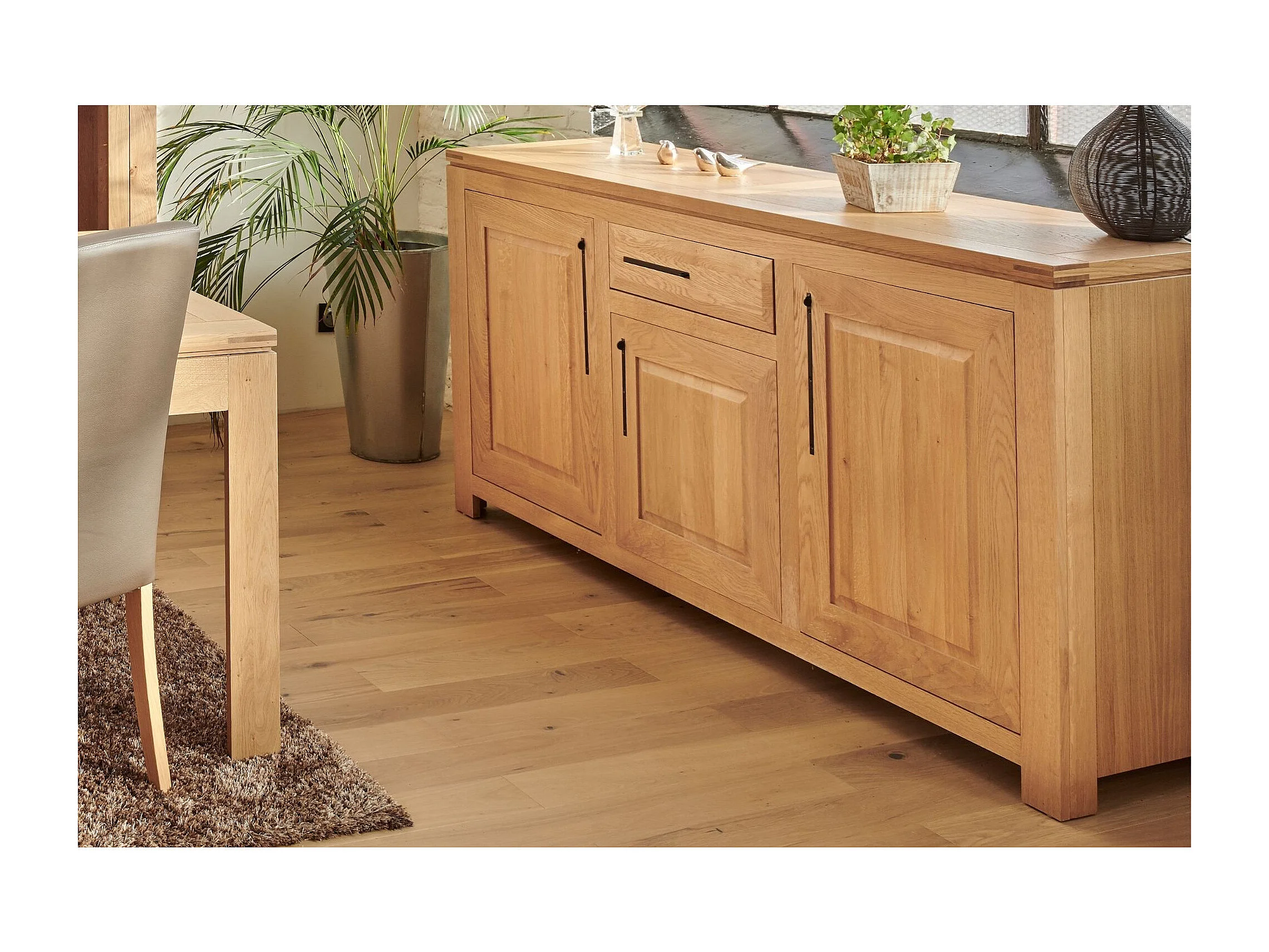 Buffet bas moderne en chêne clair 3 portes 1 tiroir - BOSTON