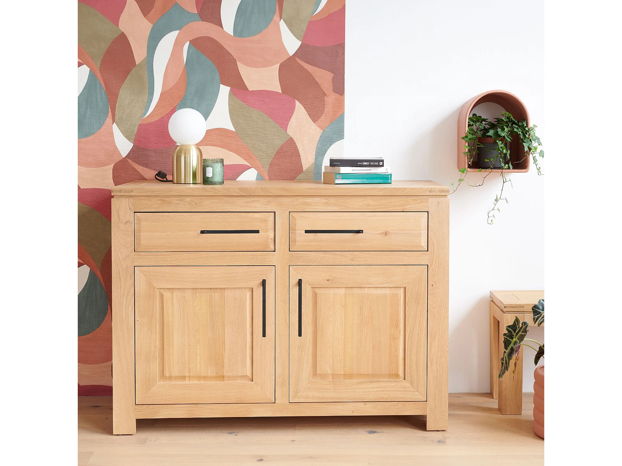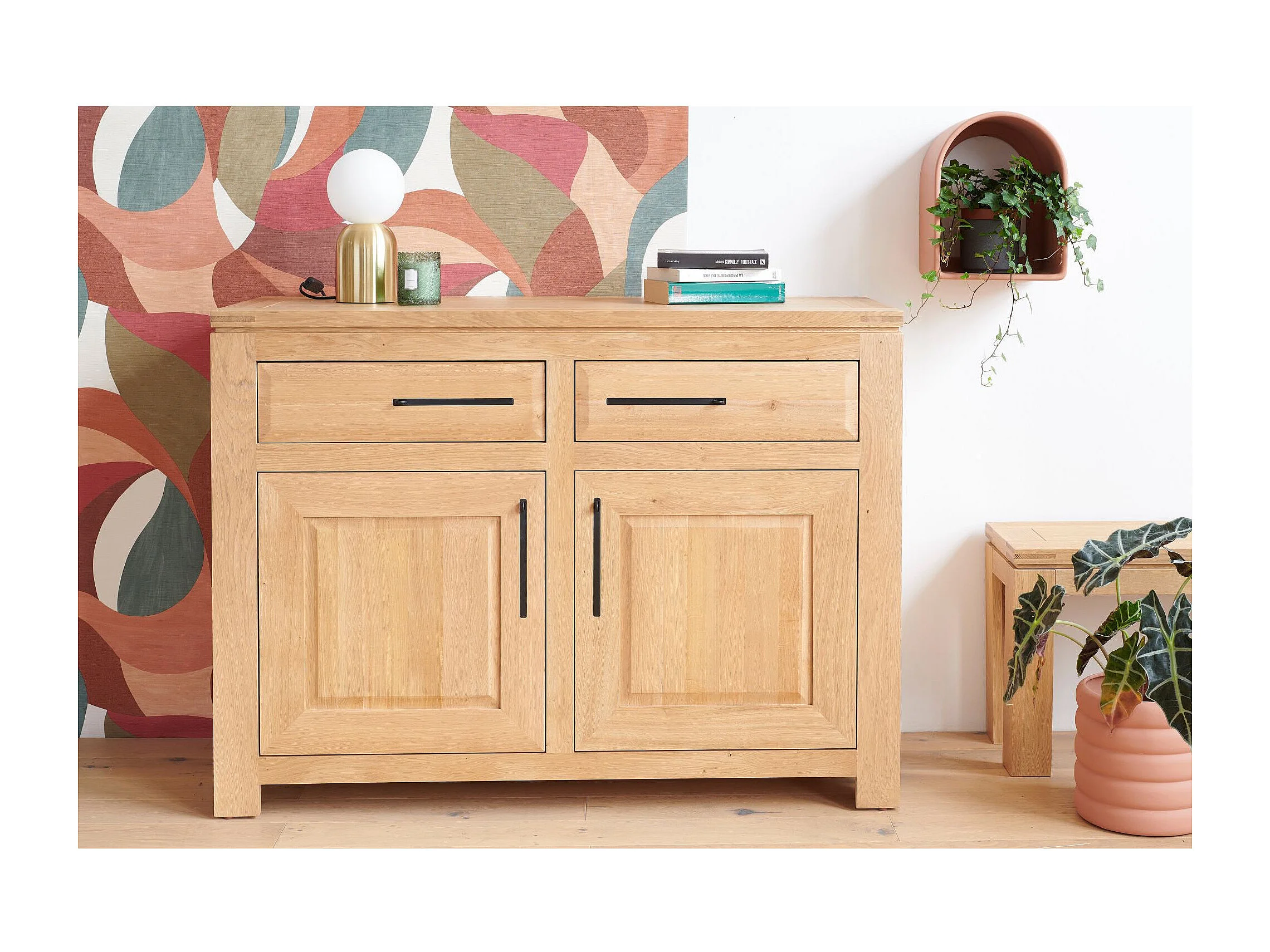 Buffet bas parisien moderne en chêne clair 2 portes 2 tiroirs - BOSTON