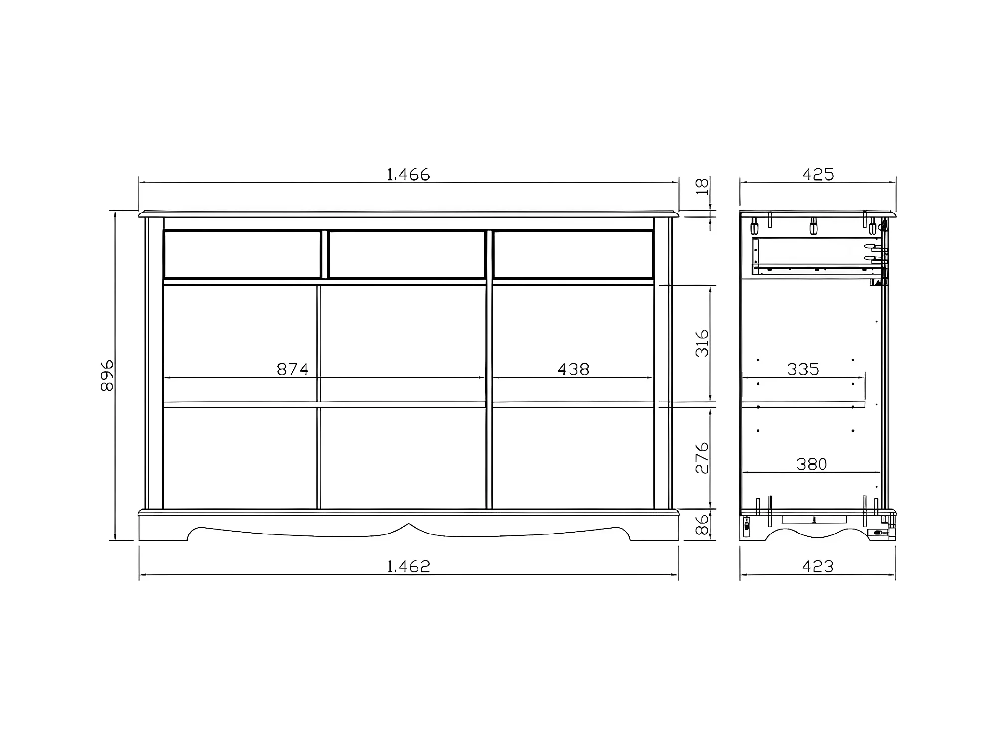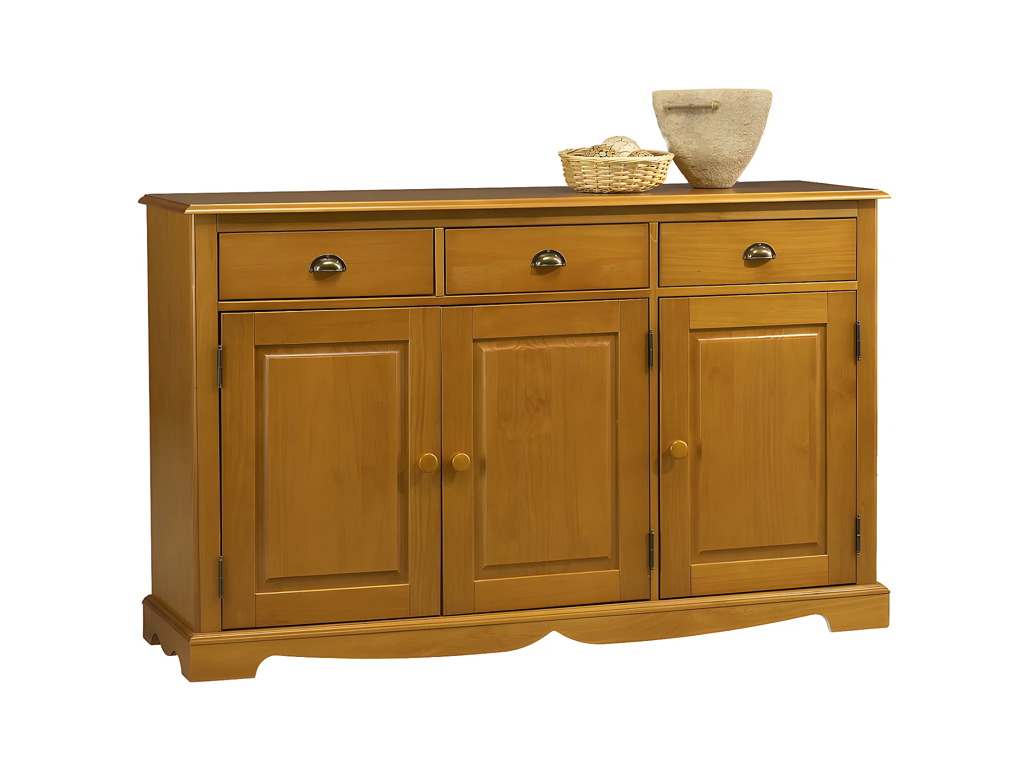 Buffet Bas 3 Portes 3 Tiroirs Pin Miel de Style Anglais L 146.6 H 89.6 P 42.5 cm
