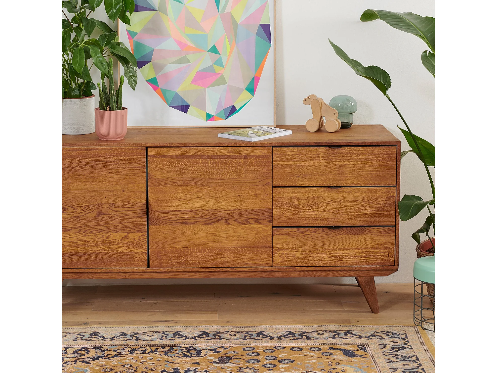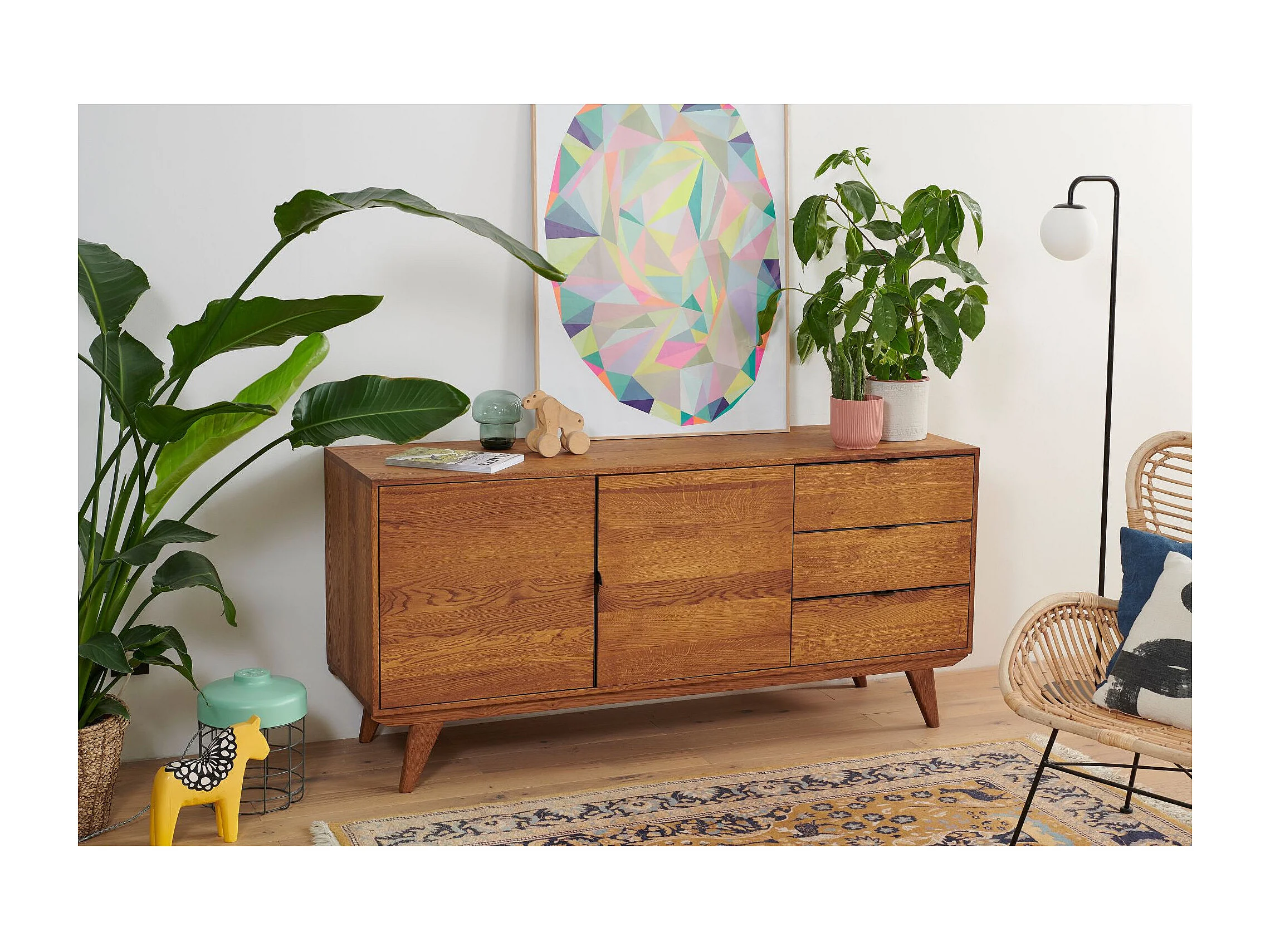 Buffet bas rétro en bois chêne 2 portes 3 tiroirs L160 noir - MALLET