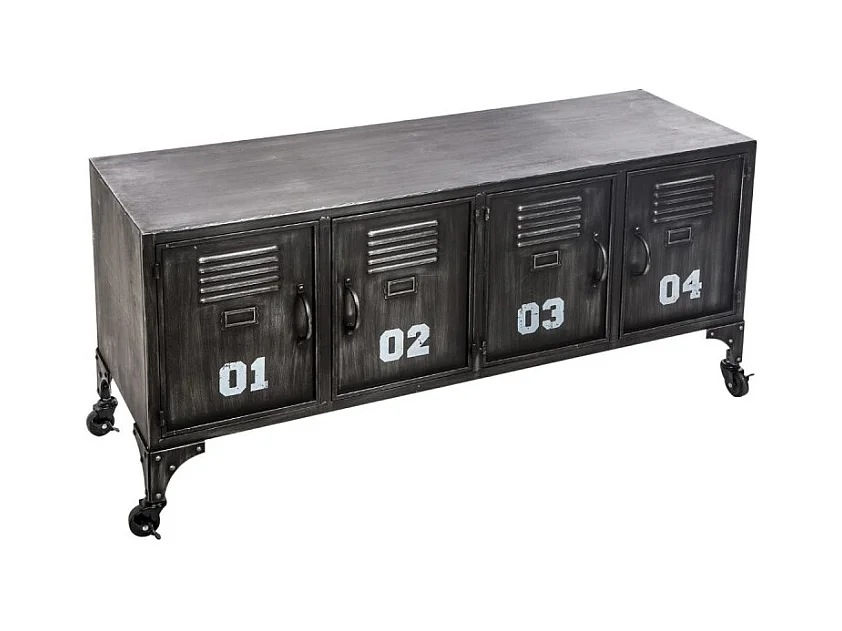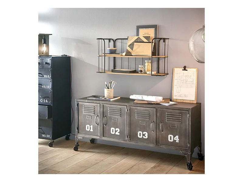 Meuble Bas Industrielle 4 Portes "Casiers" 119cm Noir