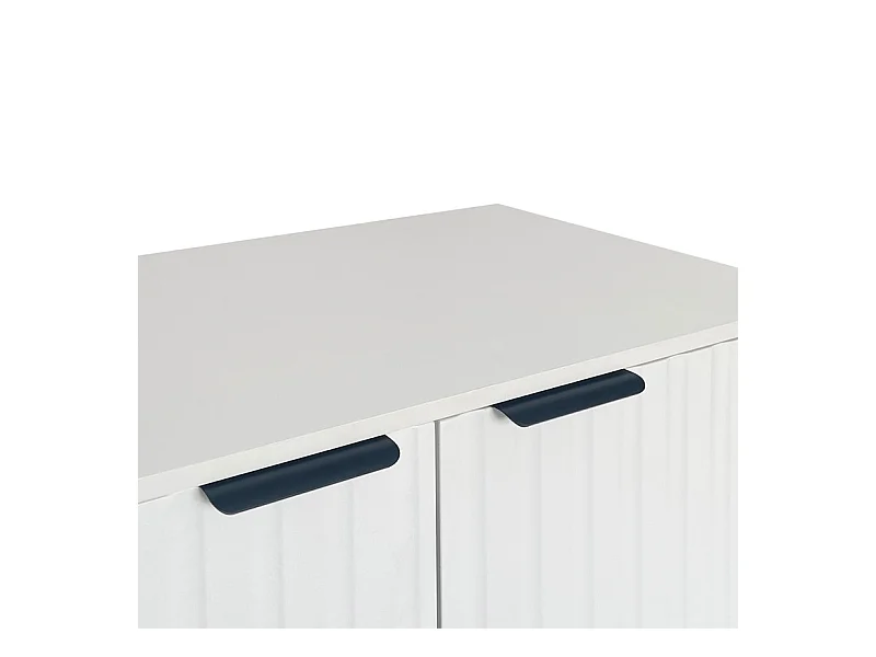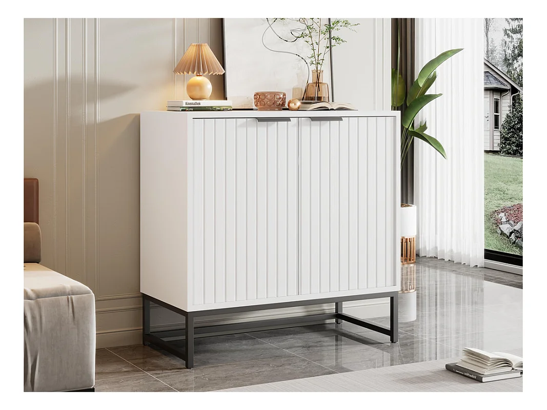 Buffet bas - style scandinave - 2 portes décoratives à grains verticaux - Blanc