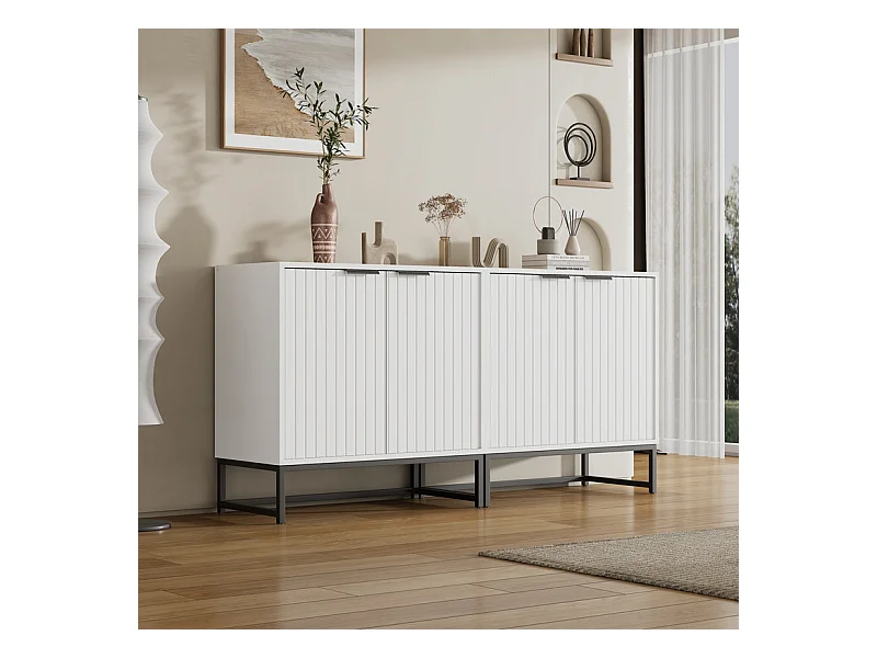 Buffet avec 4 portes - 152 x 40 x 75 cm - Bois MDF - Design de vagues - Blanc