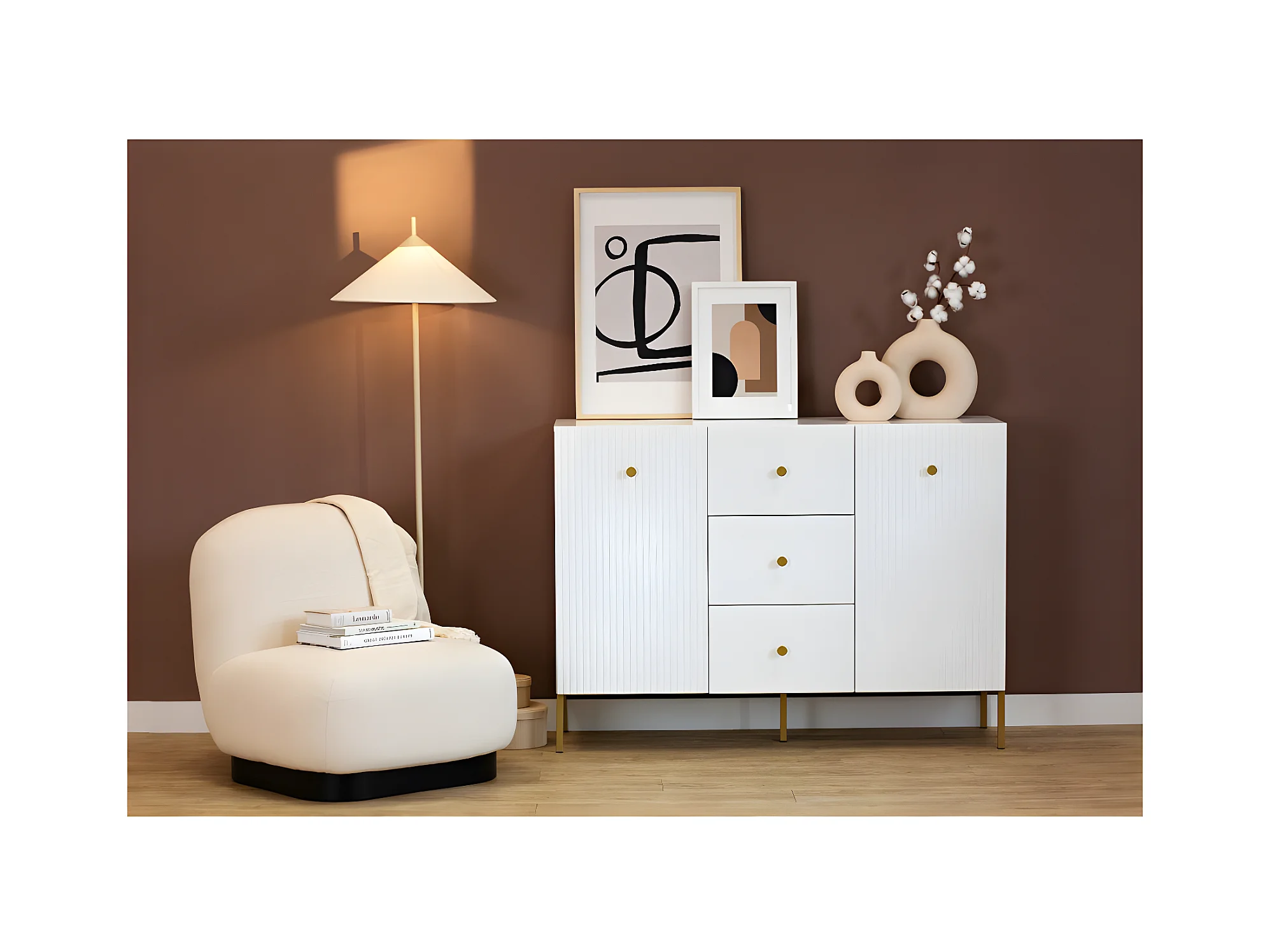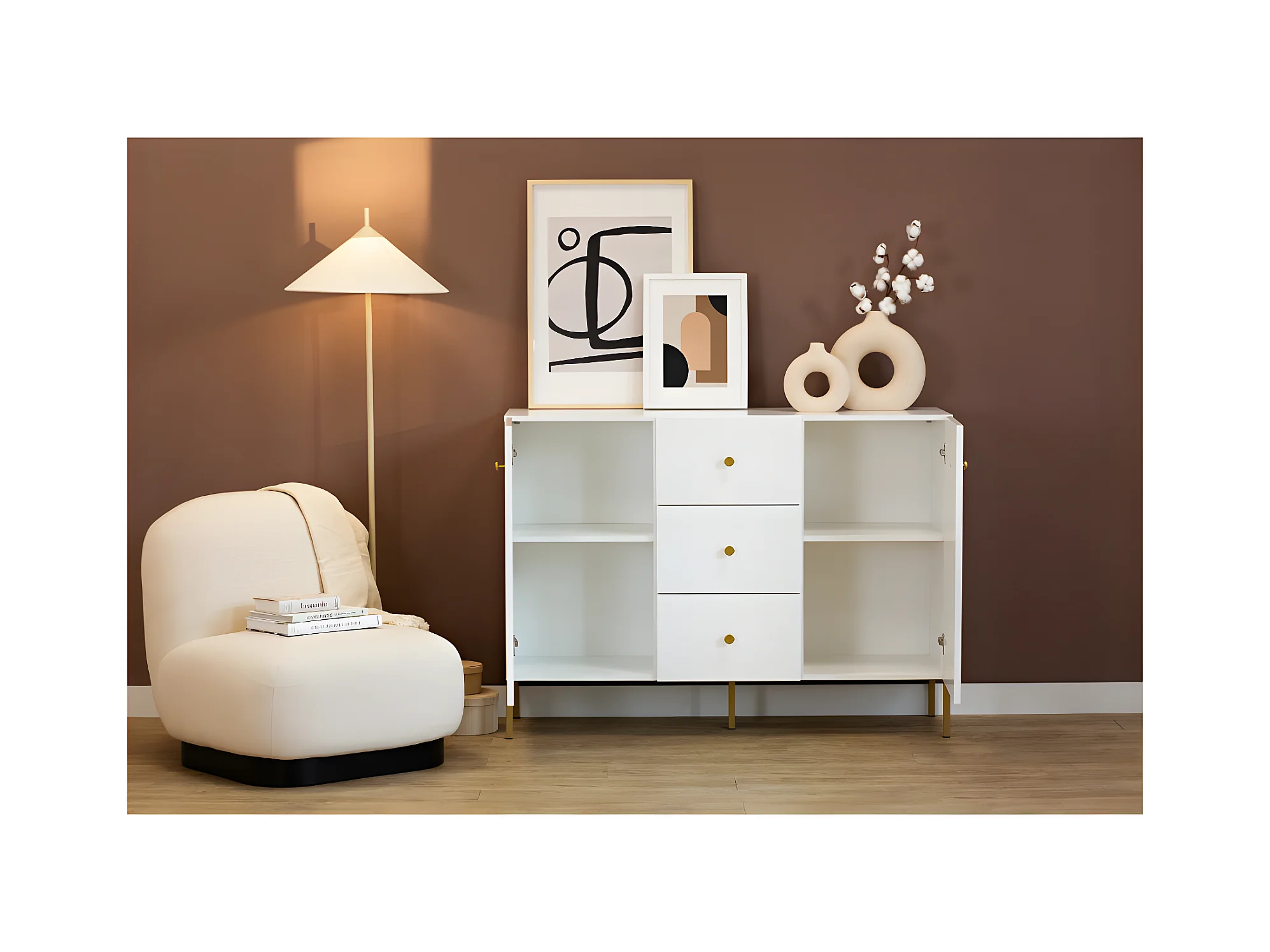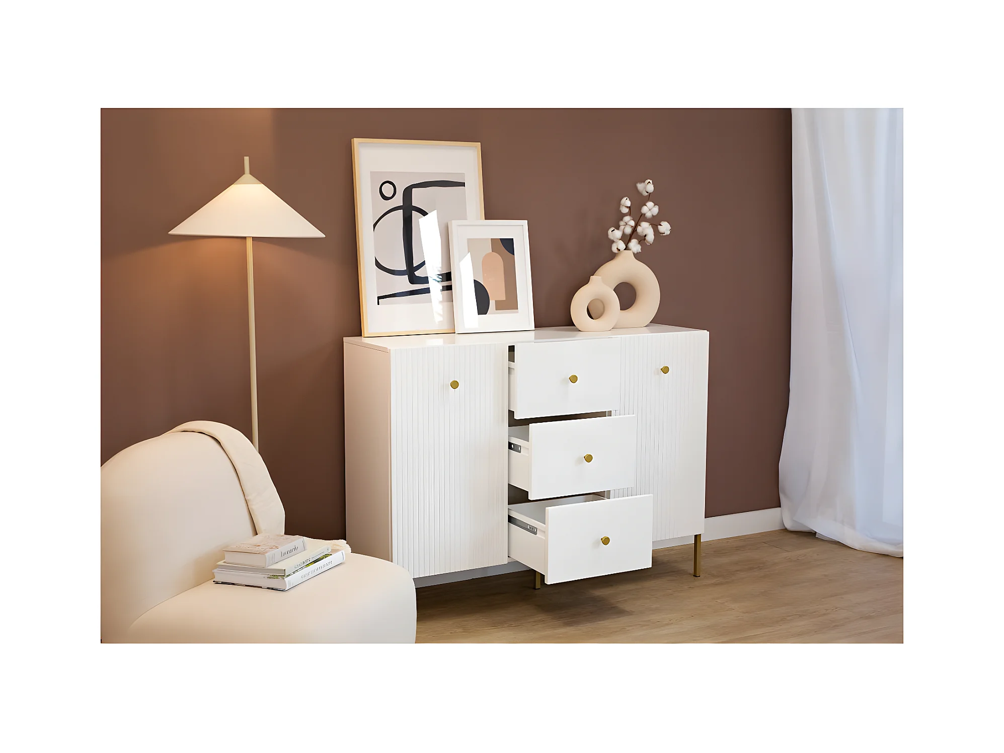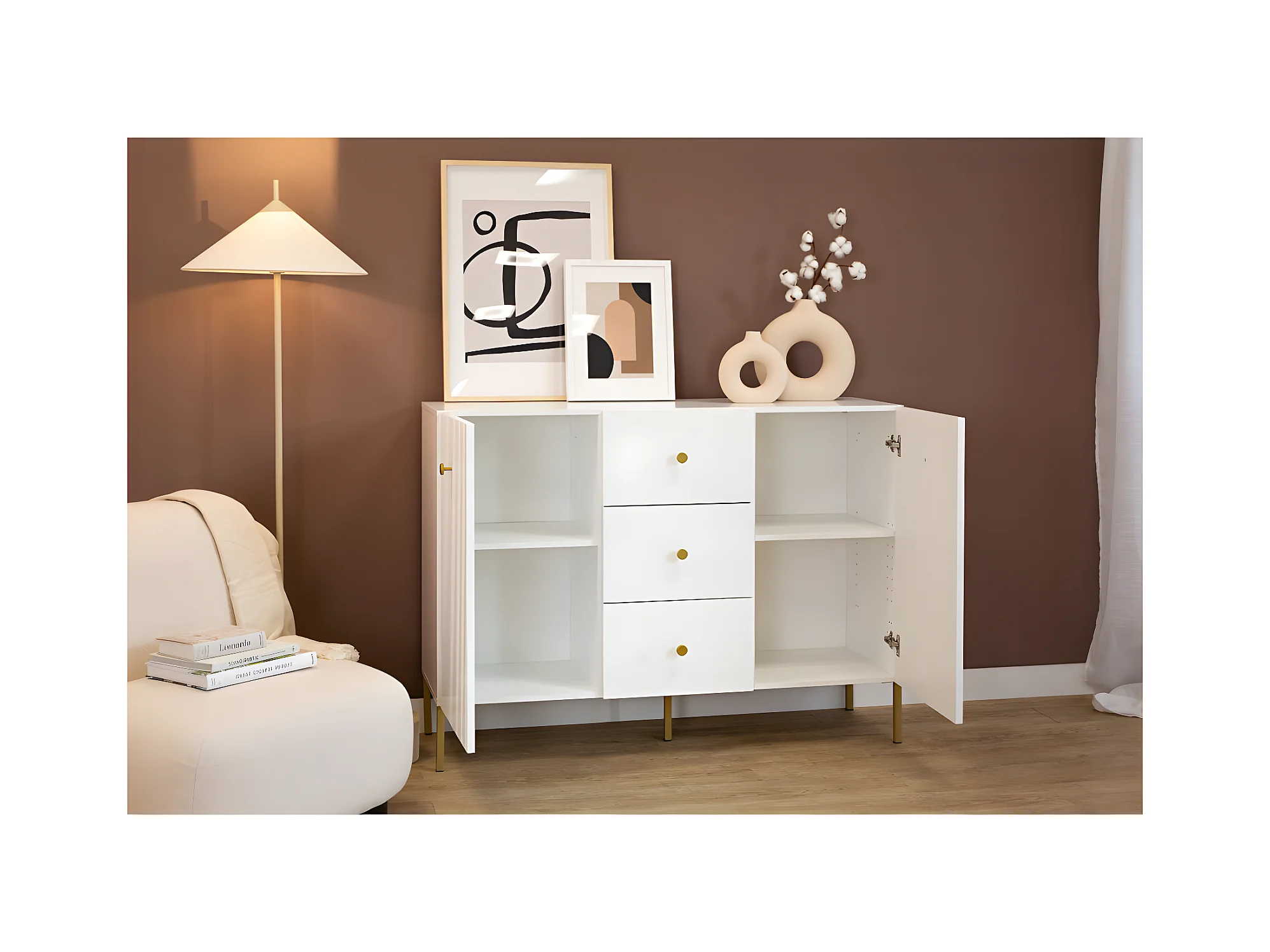 BUFFET BAS VIENA 2 Portes - 3 Tiroirs Blanc - Doré