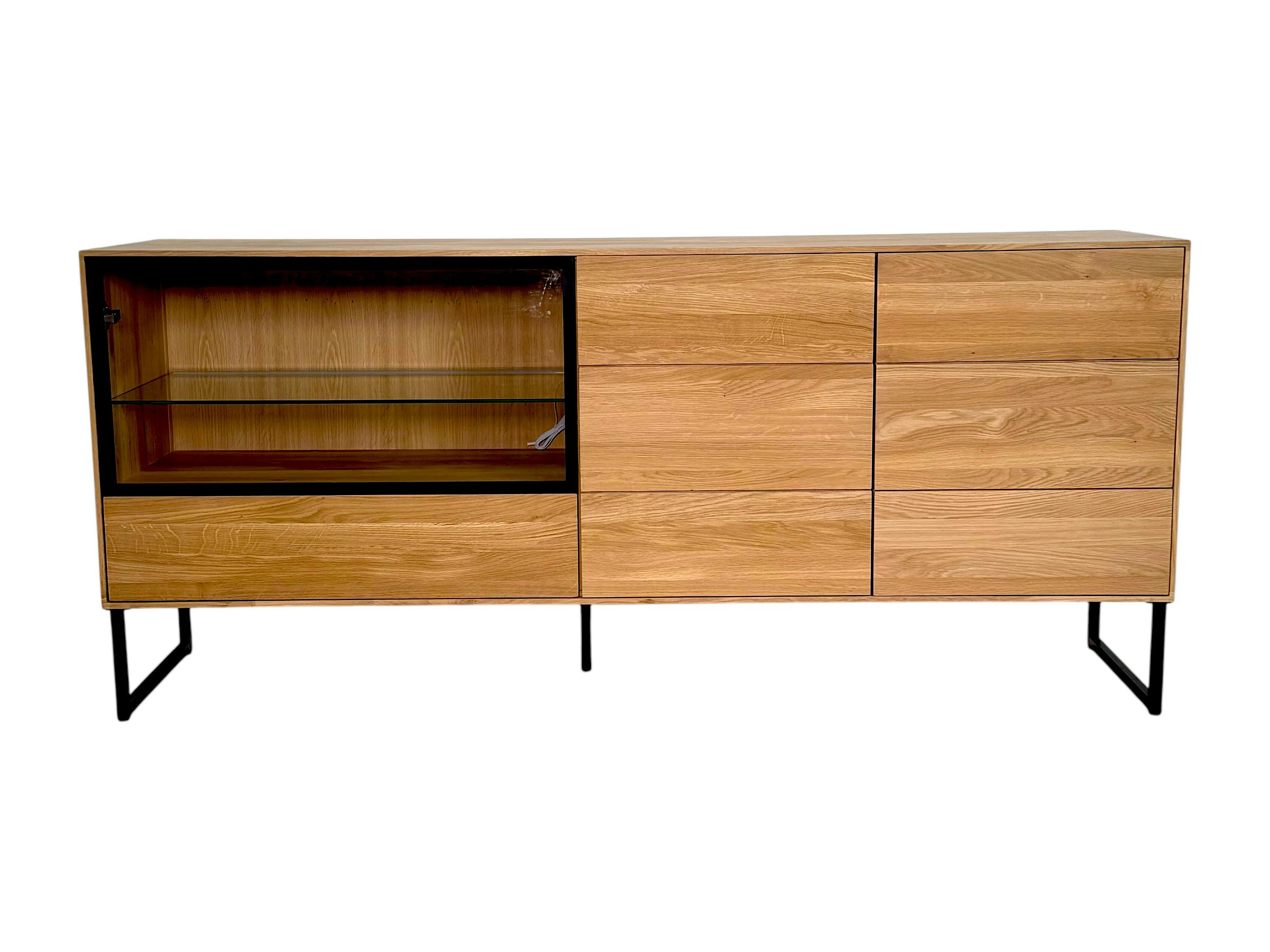 Buffet bas vitrine bois de chêne huilé 180 cm HAVEN
