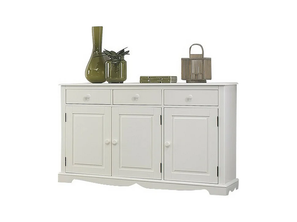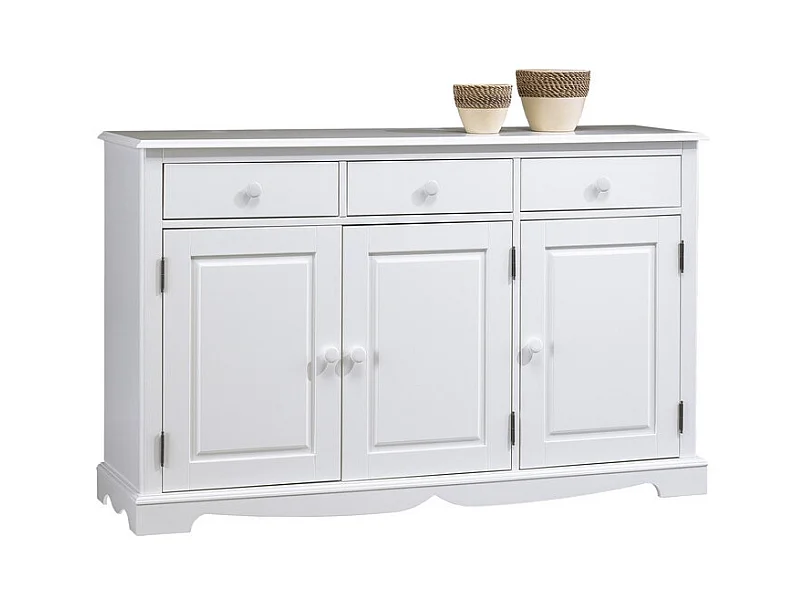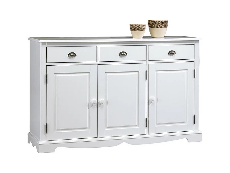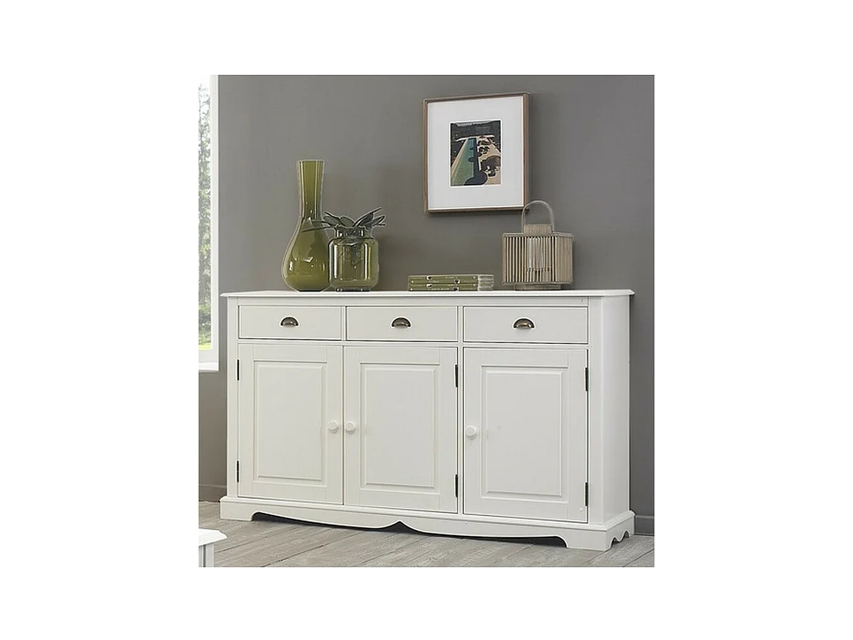 Buffet Blanc 3 Portes 3 Tiroirs Style Anglais 4 Niches L 146.6 H 89.6 P 42.5 cm