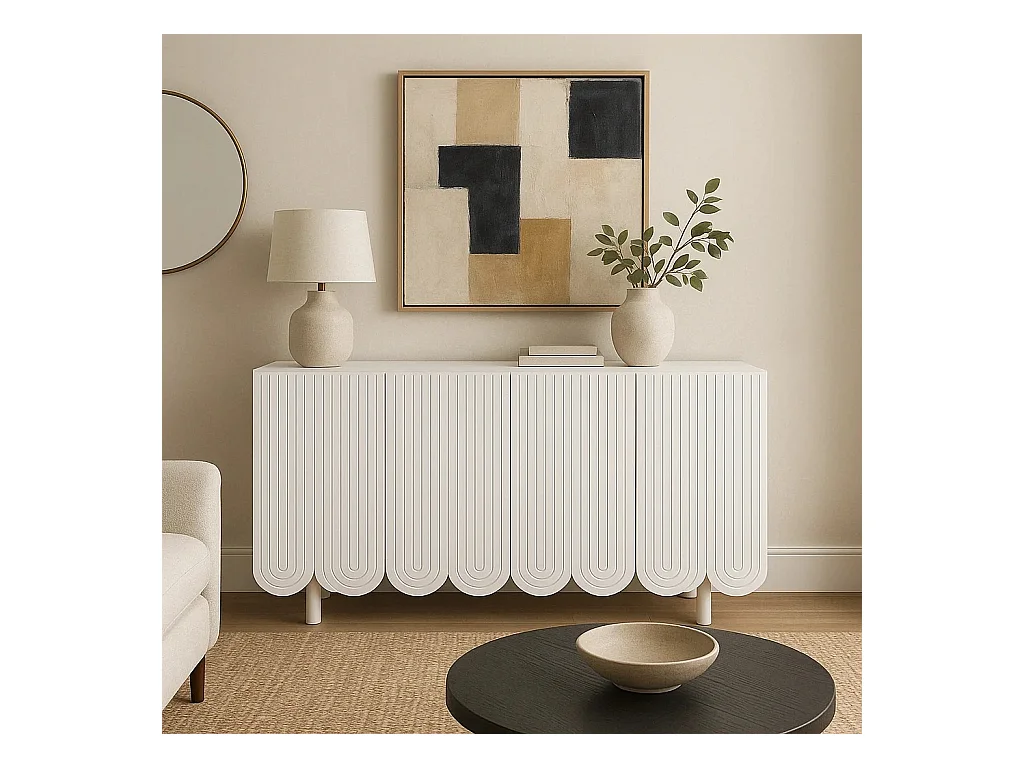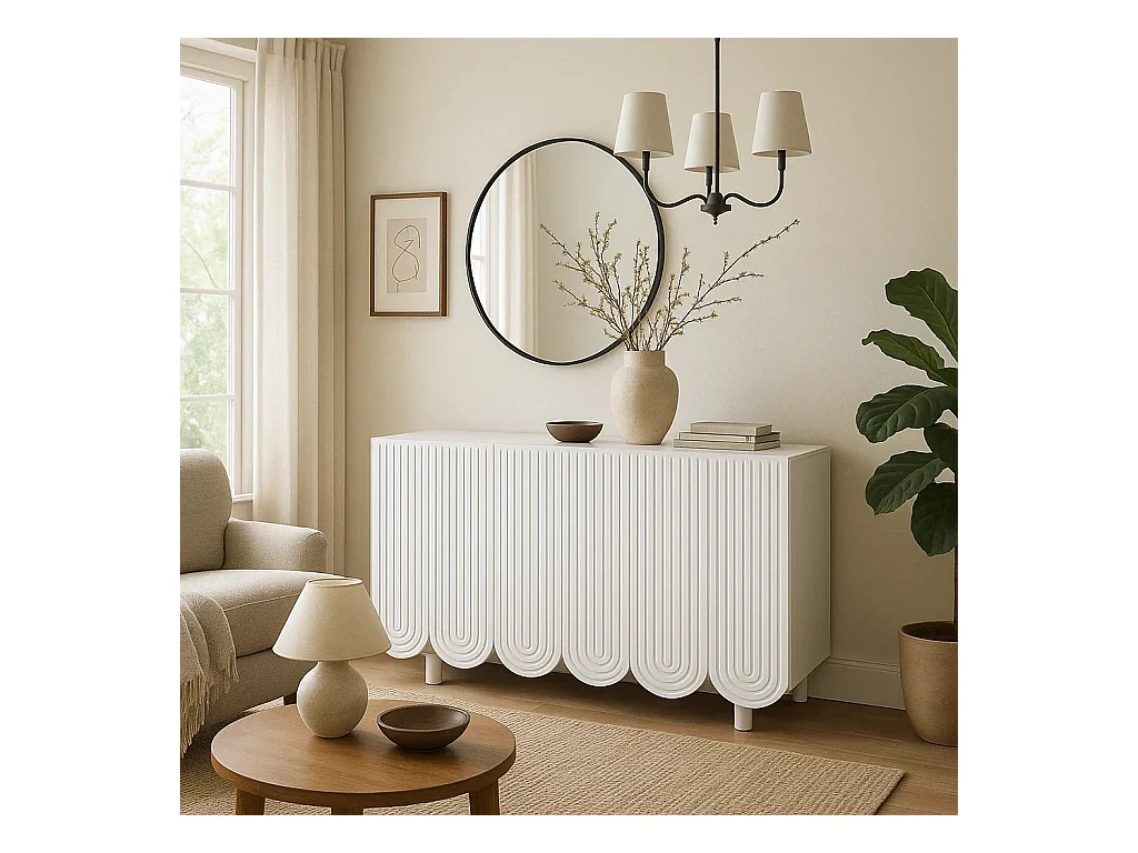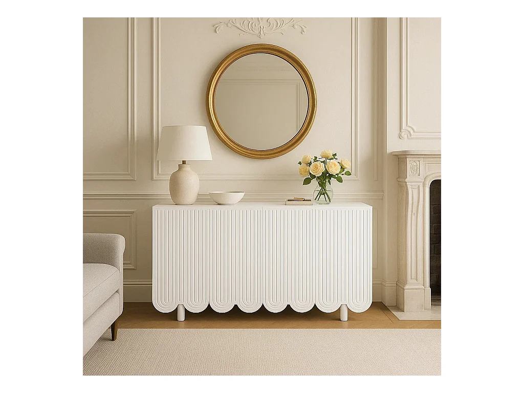 URBAN MEUBLE Buffet blanc 4 portes avec motif et rangement 120*37.5*80.8 cm