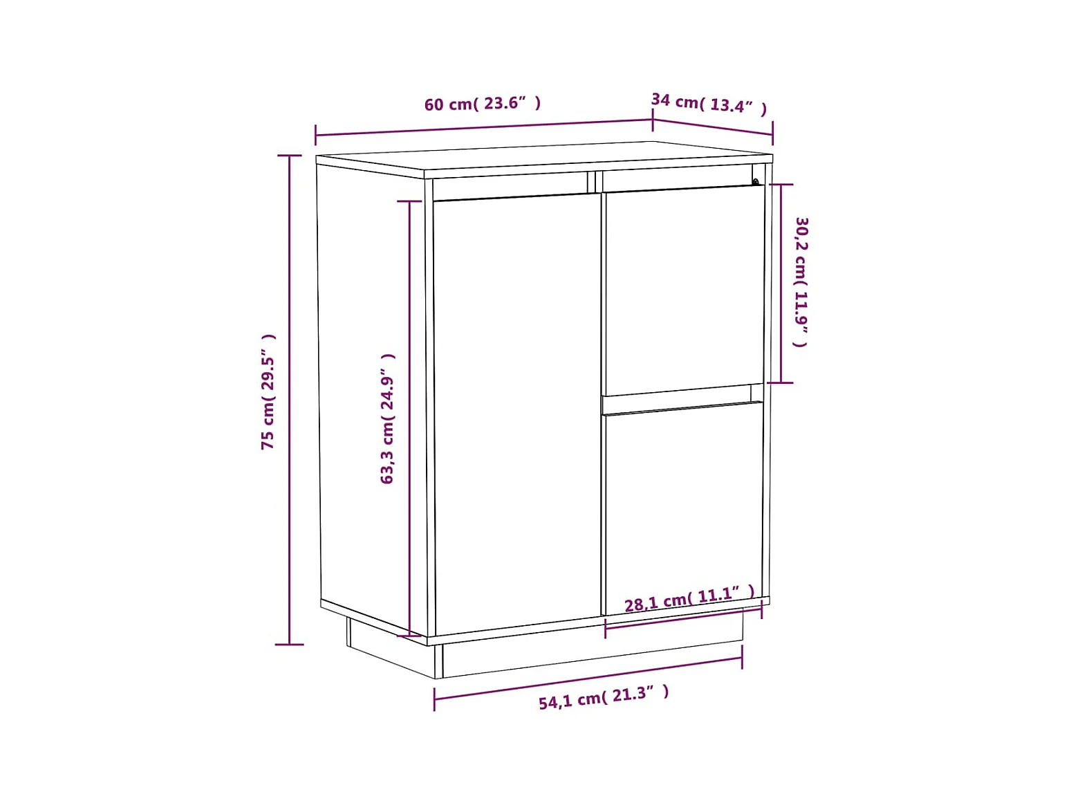 Buffet Blanc 60x34x75 Bois massif de pin 2