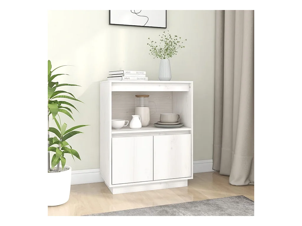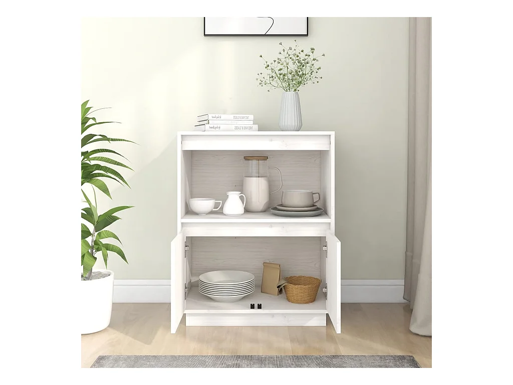 Buffet Blanc 60x34x75 Bois massif de pin 2