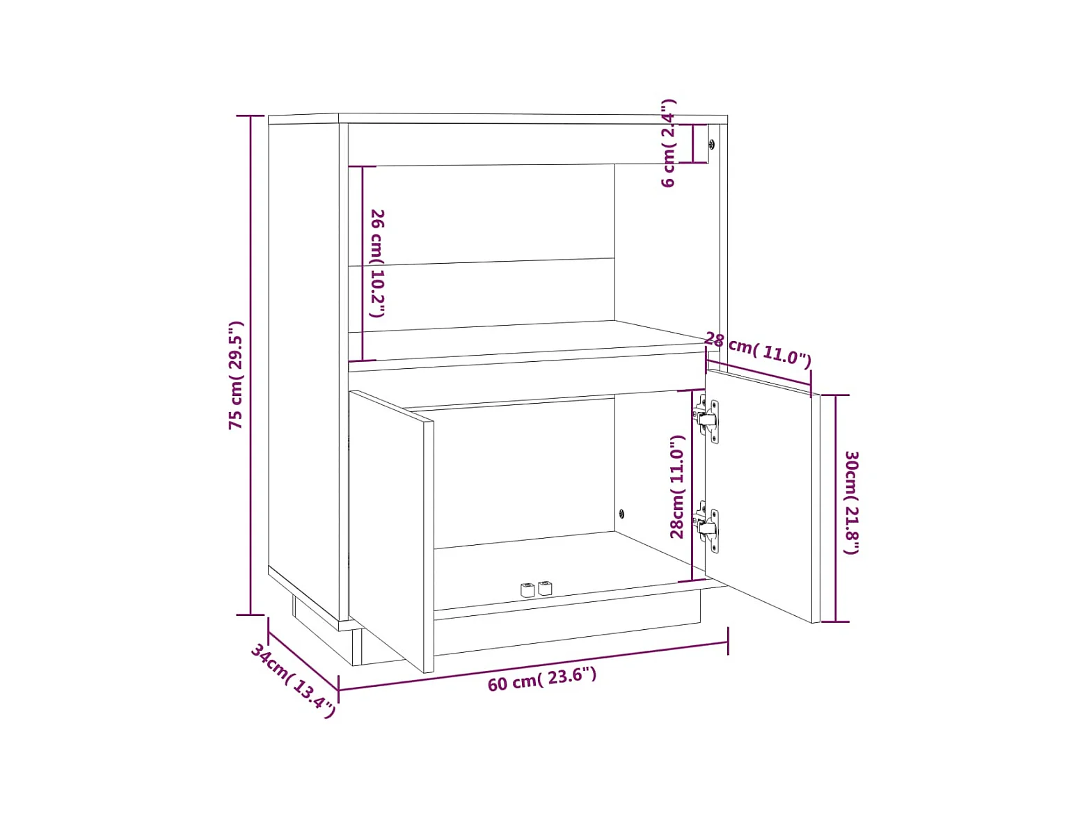 Buffet Blanc 60x34x75 Bois massif de pin 4
