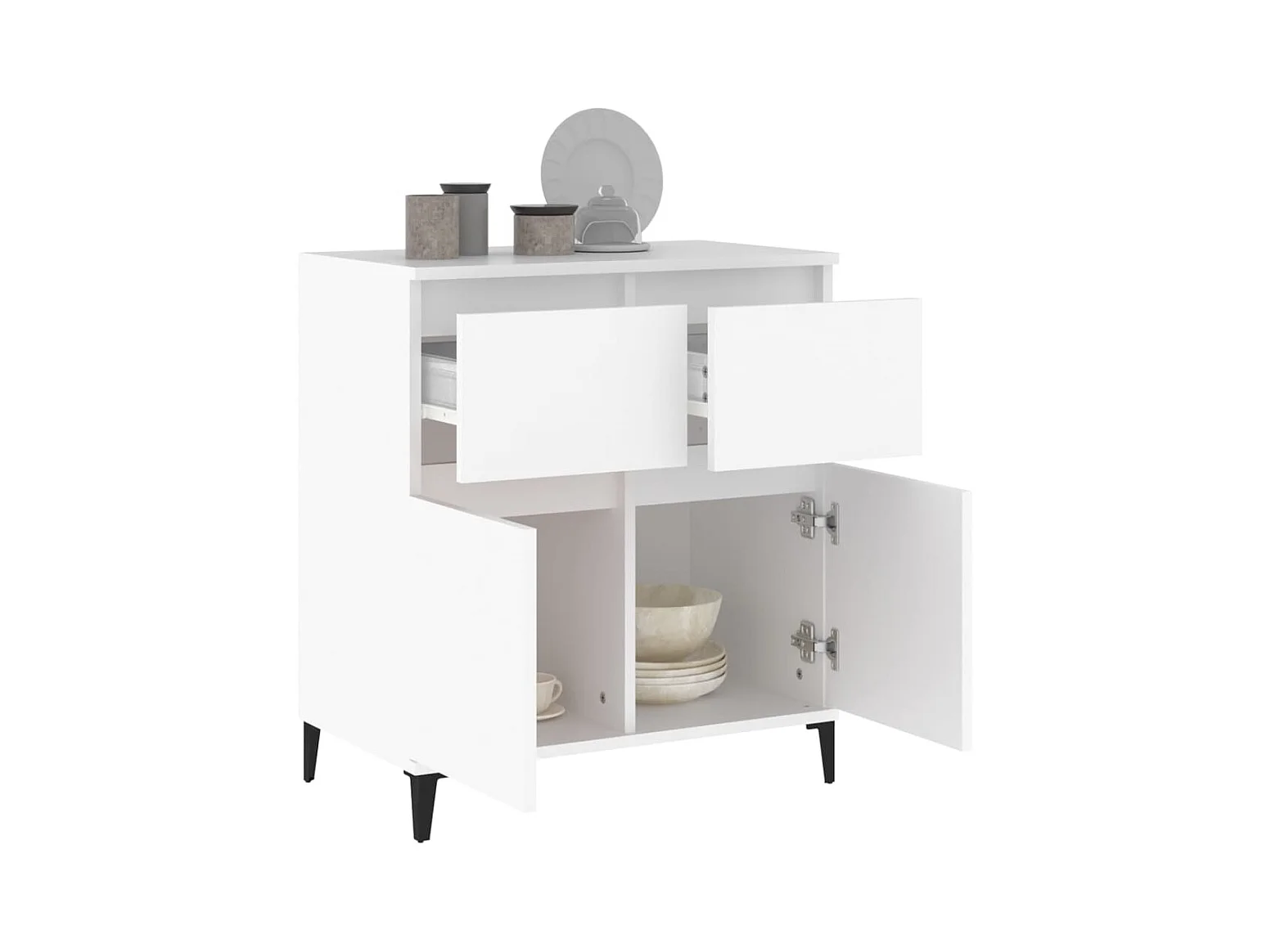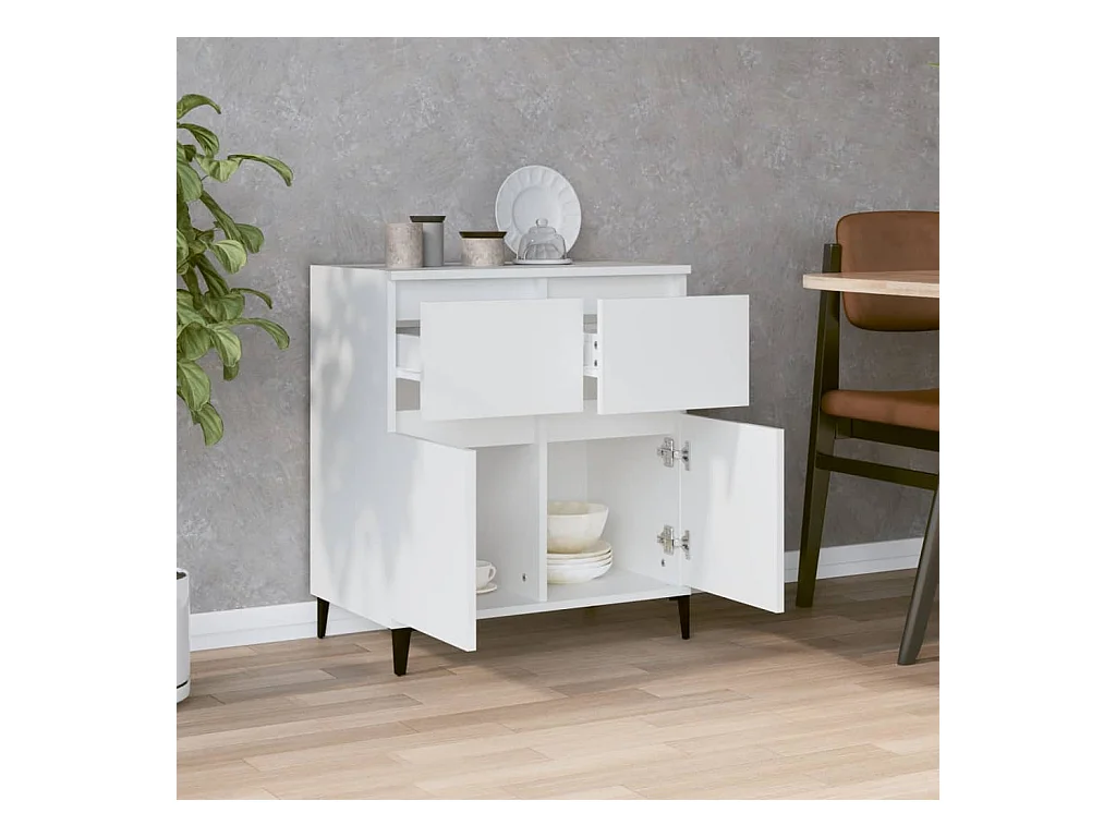 Buffet avec pieds en bois massif blanc bois d'ingénierie