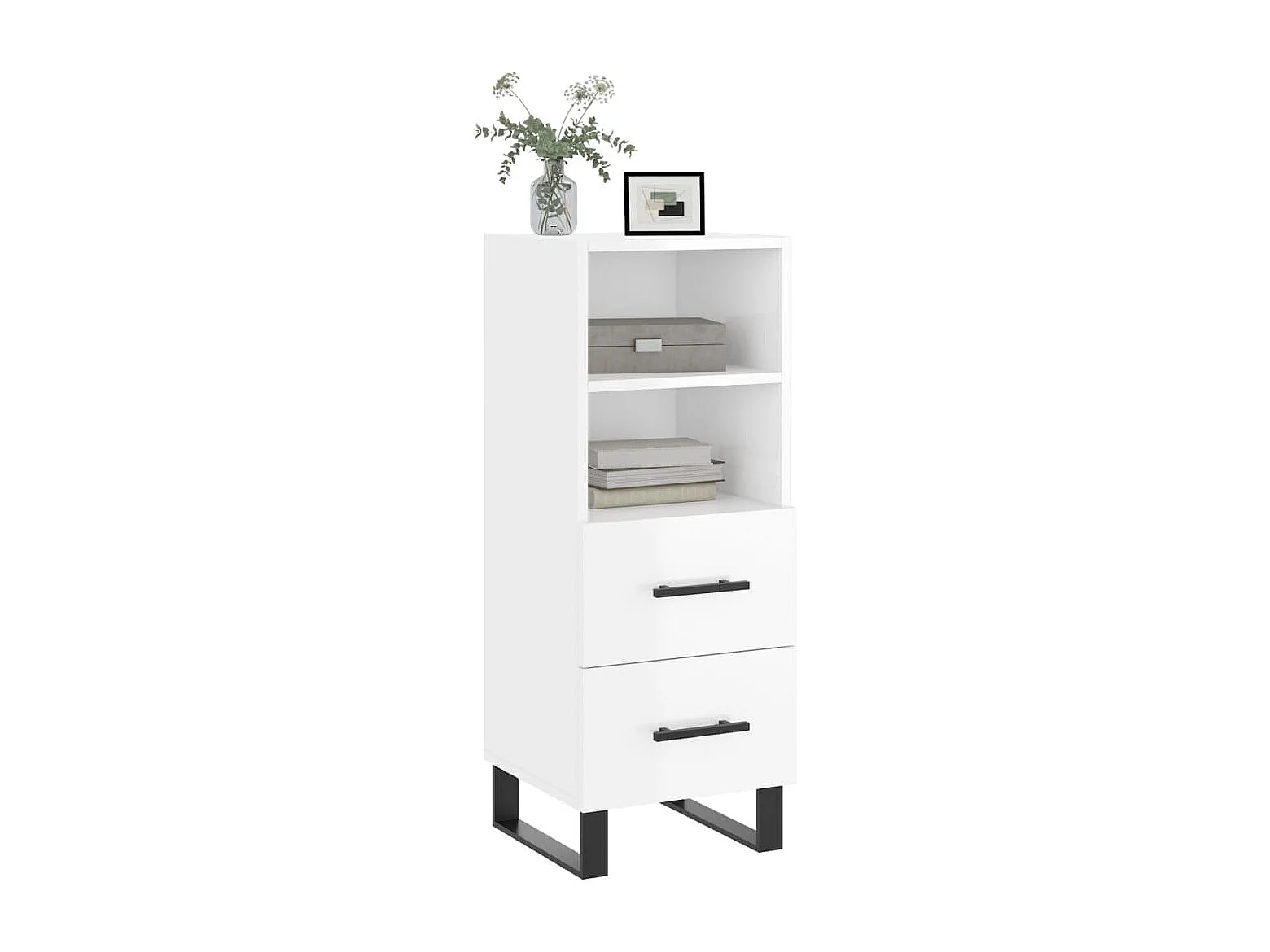 Buffet Blanc brillant 34,5x34x90 Bois d'ingénierie