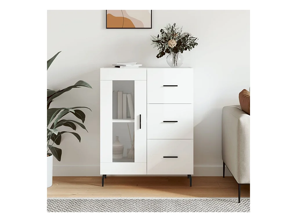 Buffet Blanc brillant 69,5x34x90 cm Bois d'ingénierie QWE48191