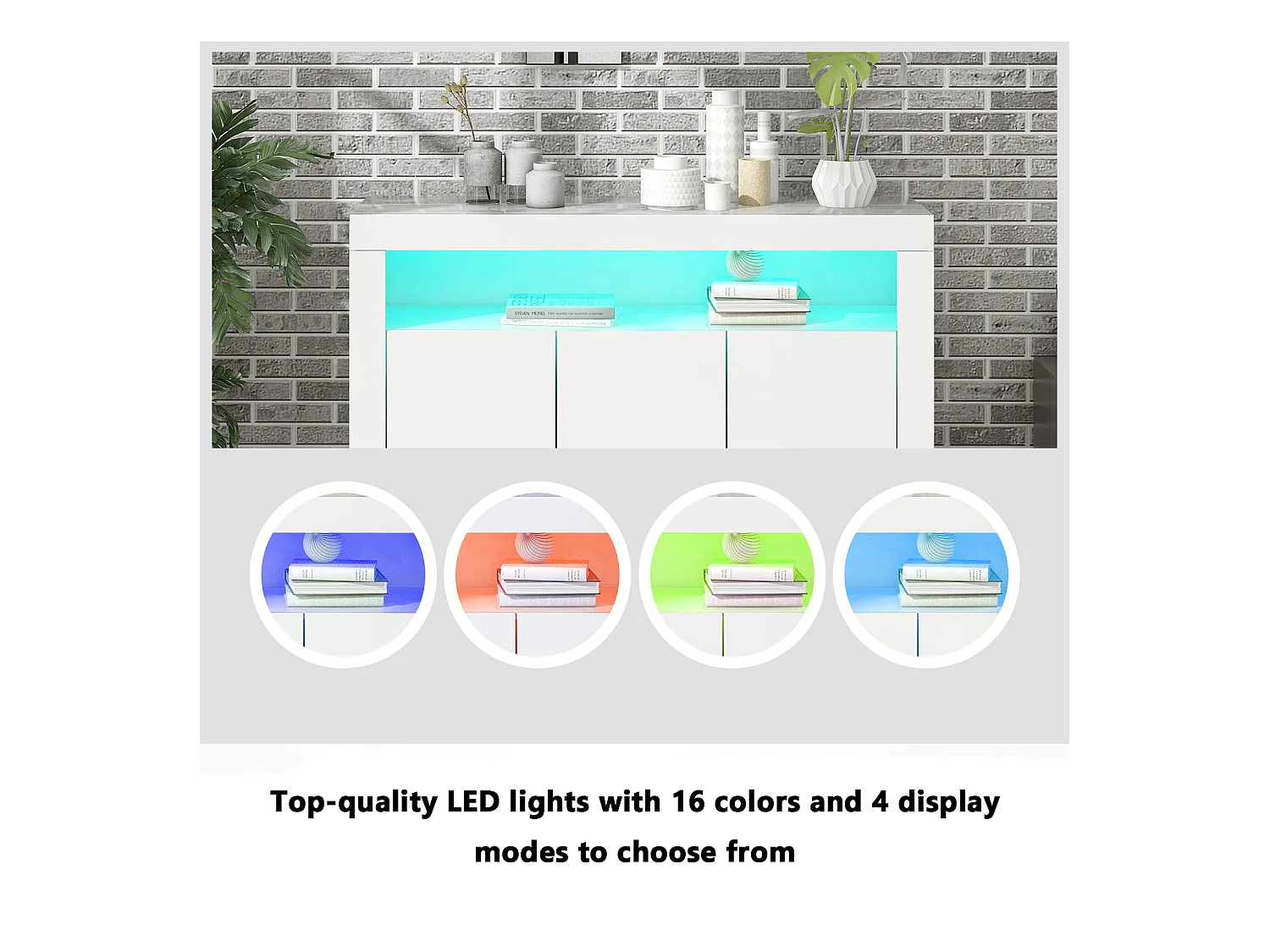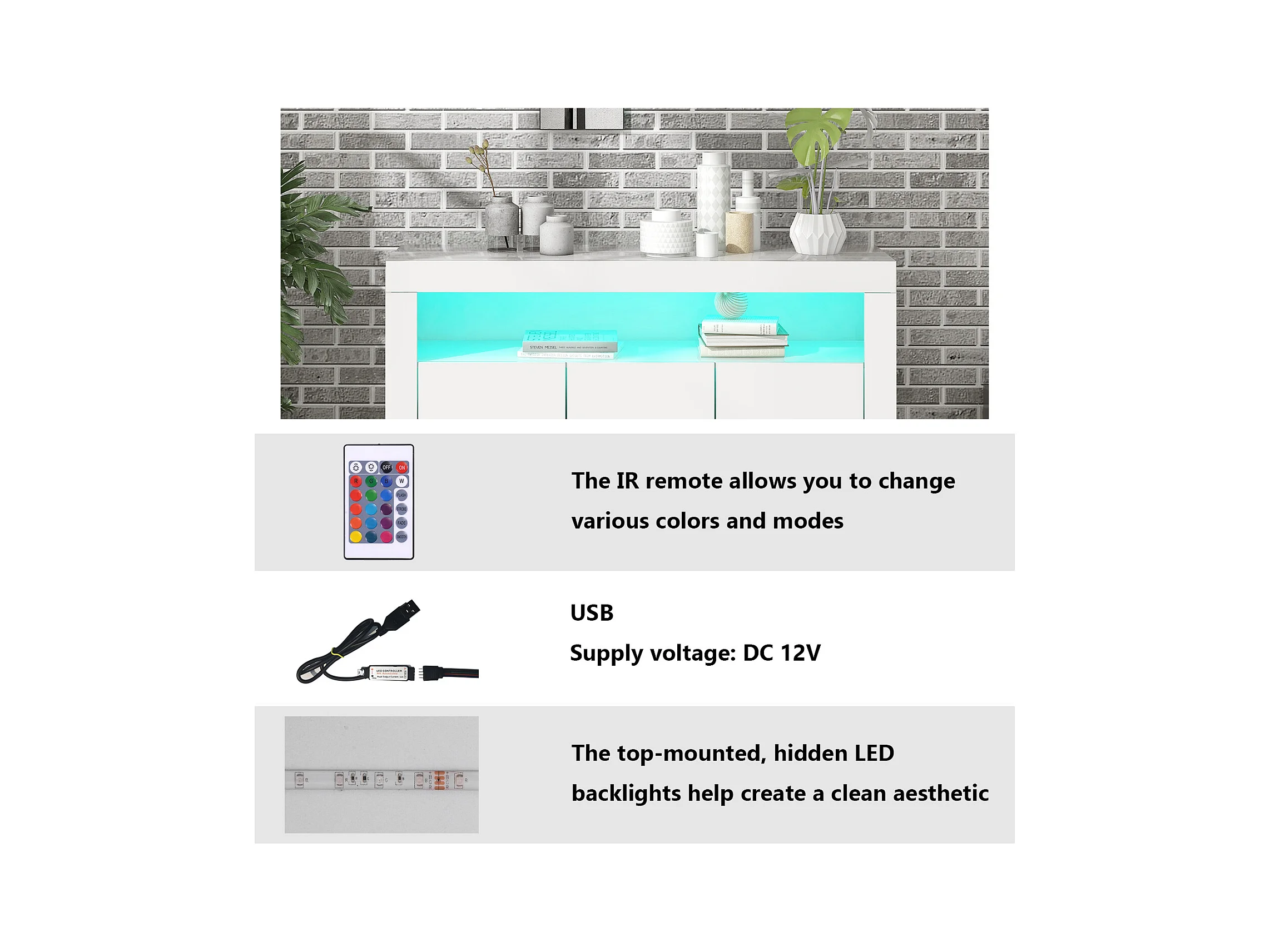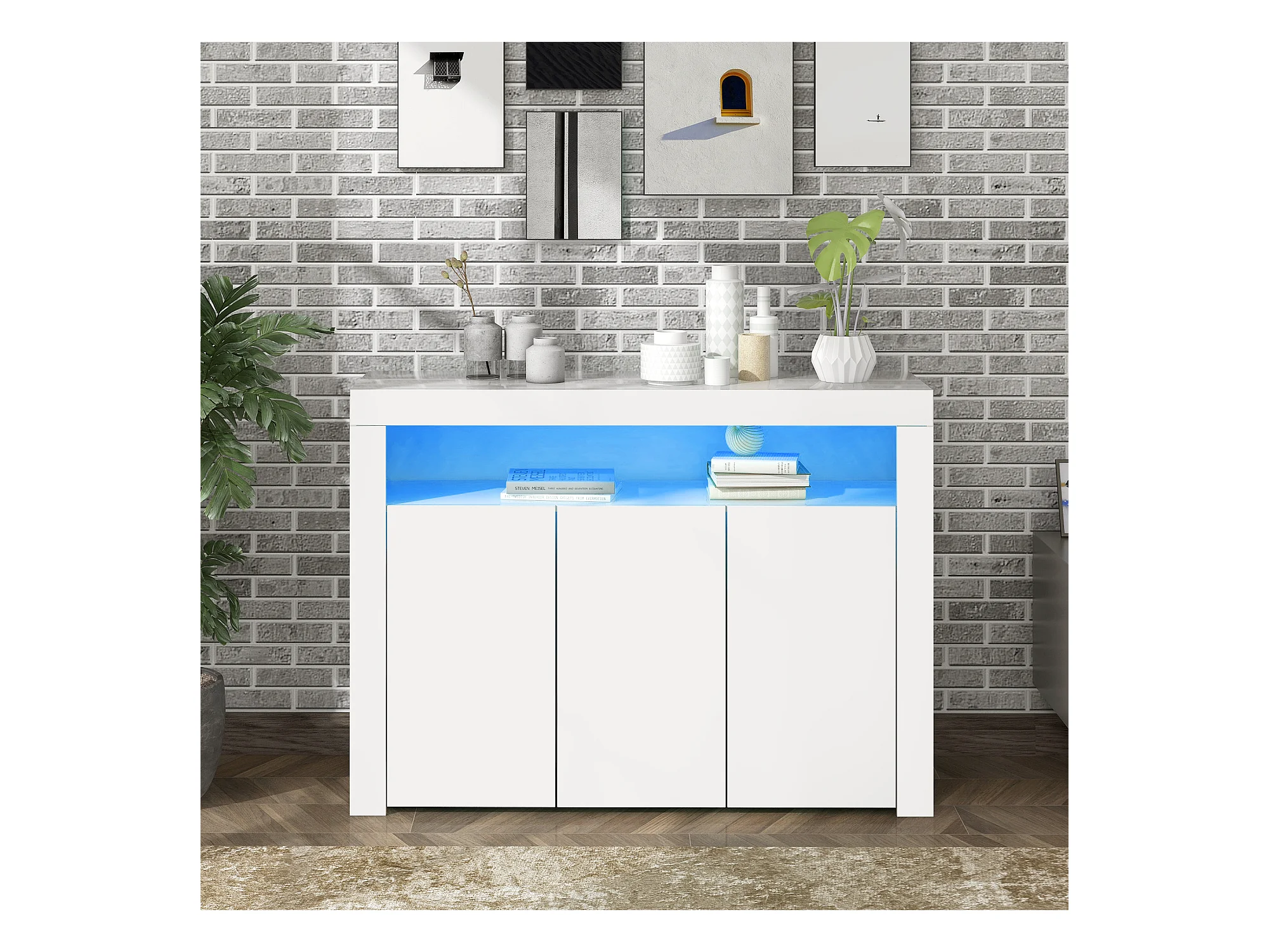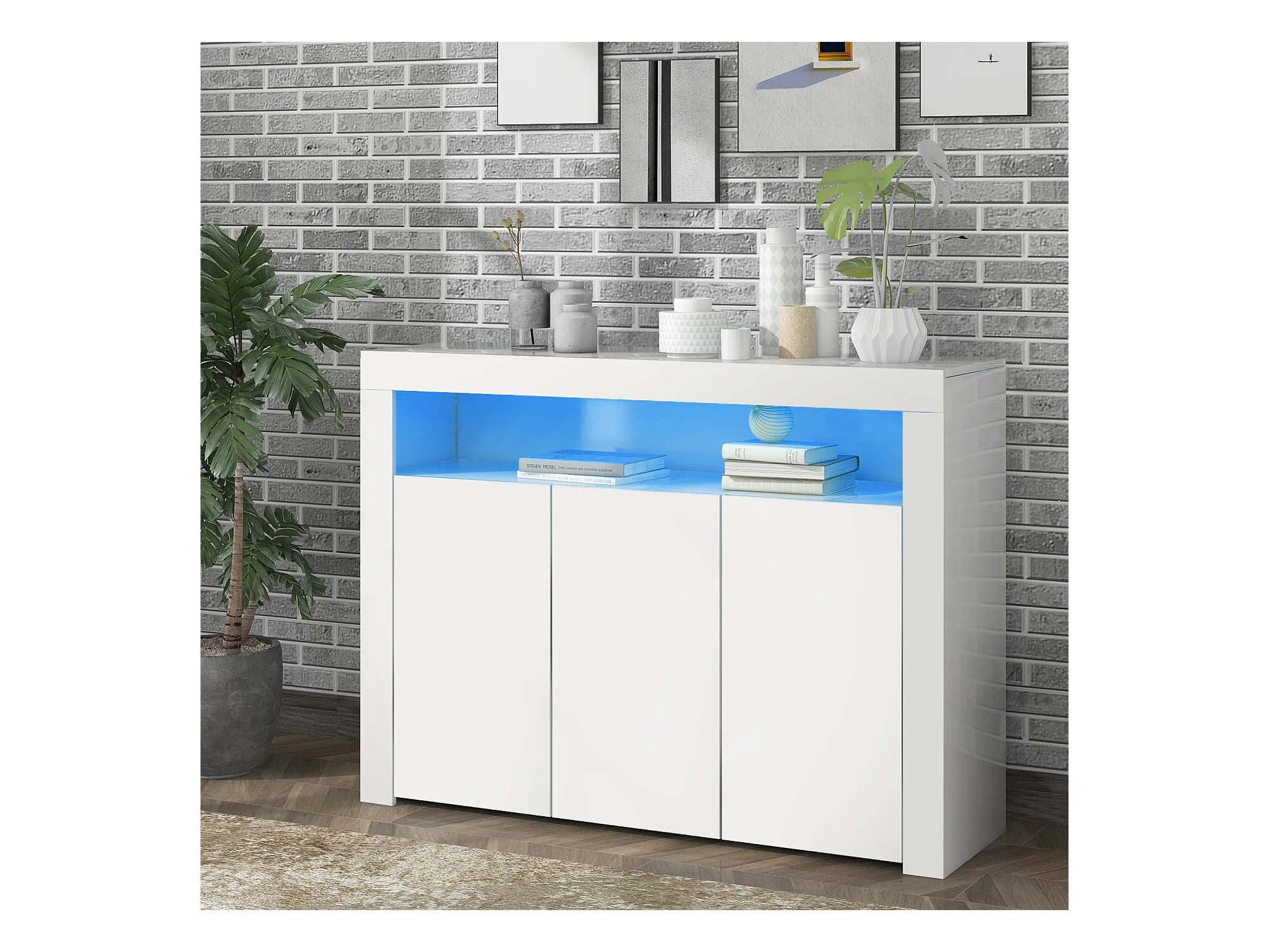 Buffet avec 3 portes et étagère - 130 x 35 x 95 cm - LEDs - Panneaux de particules - Blanc
