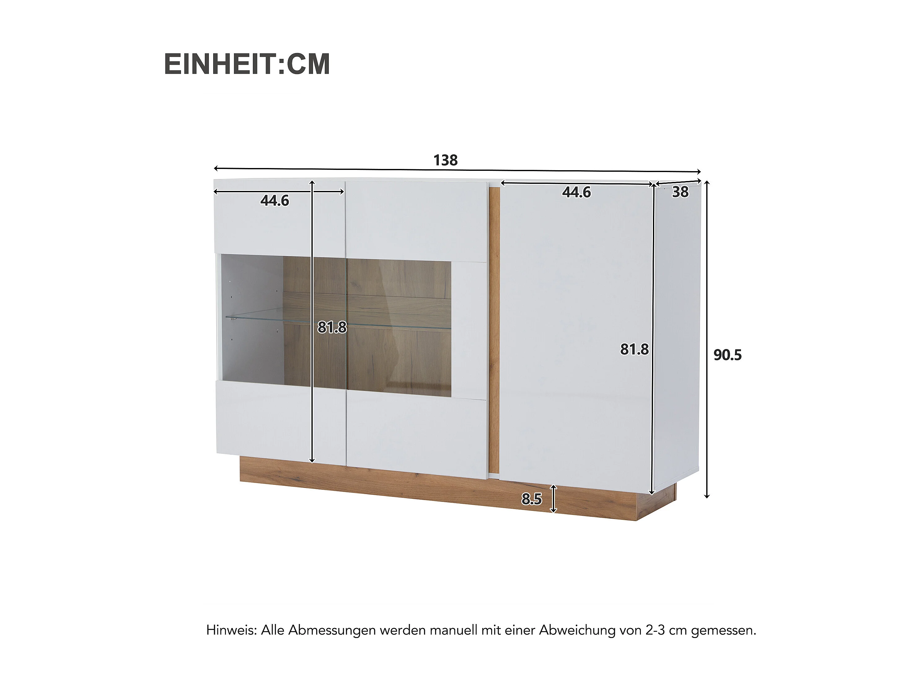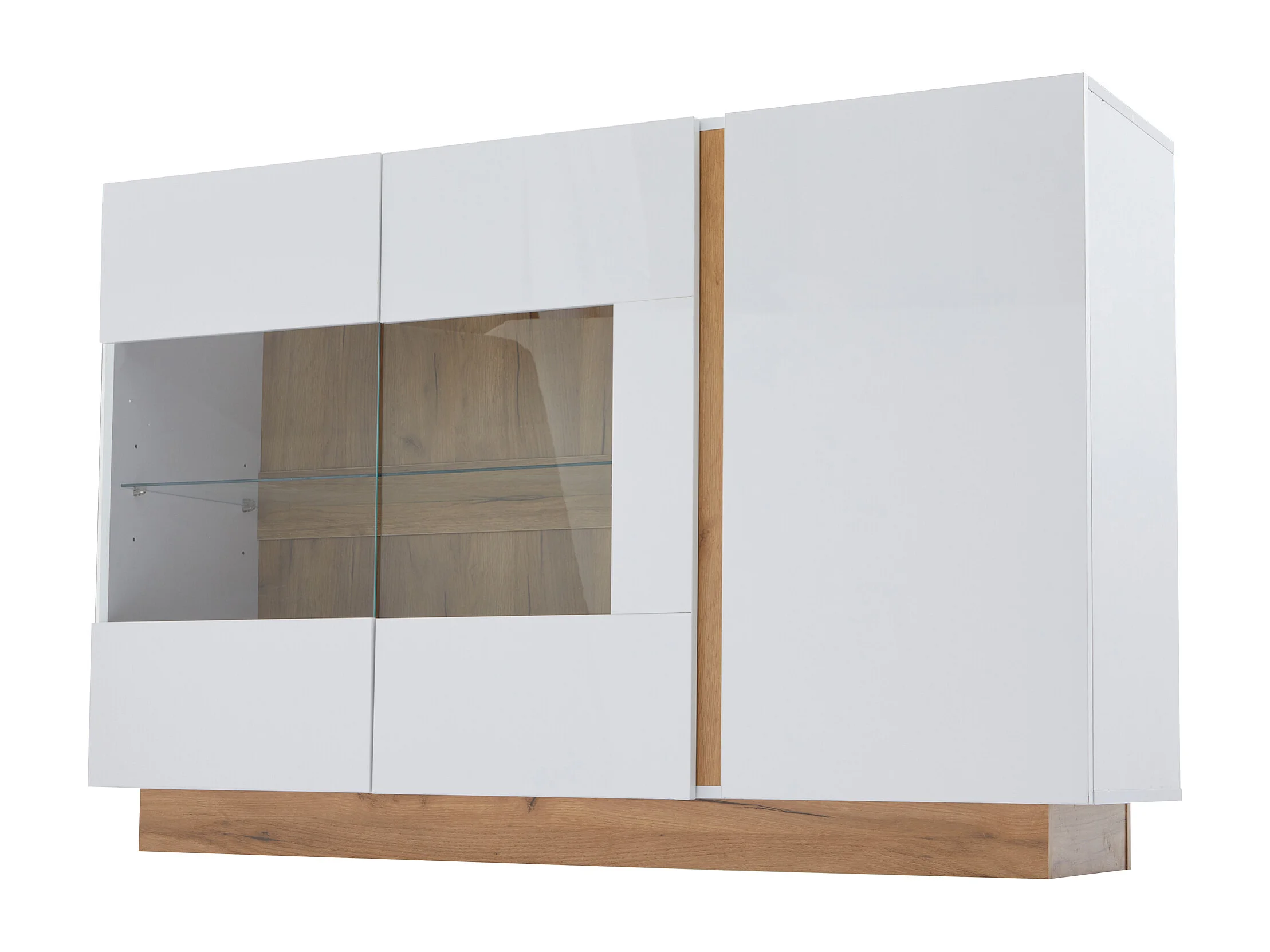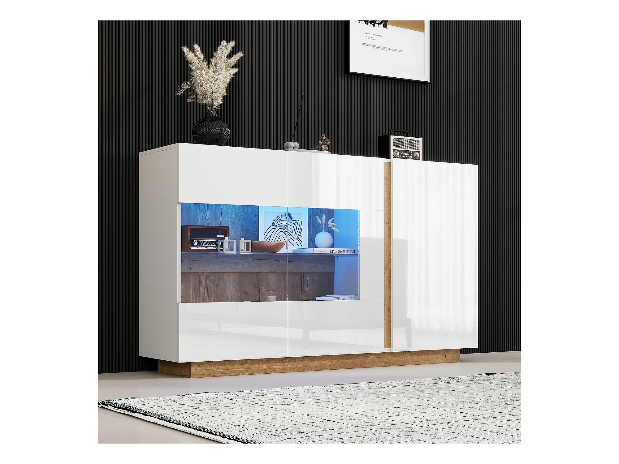 Buffet blanc brillant - Commode 3 portes avec éclairage LED - piètement en bois