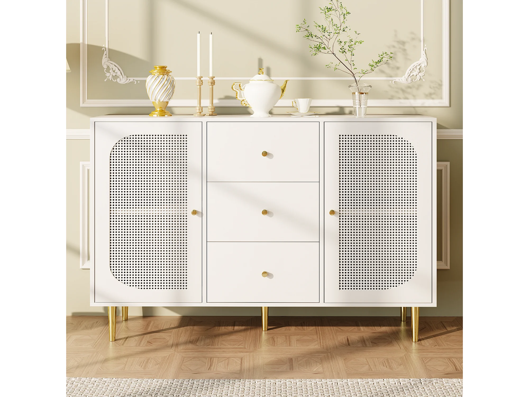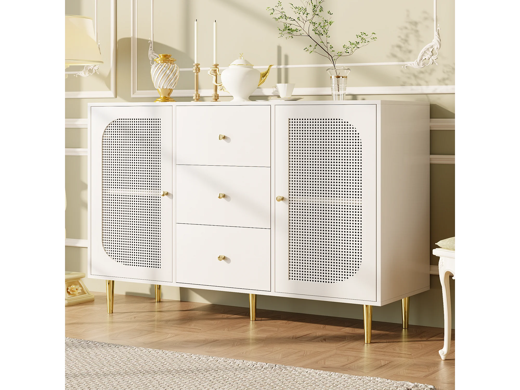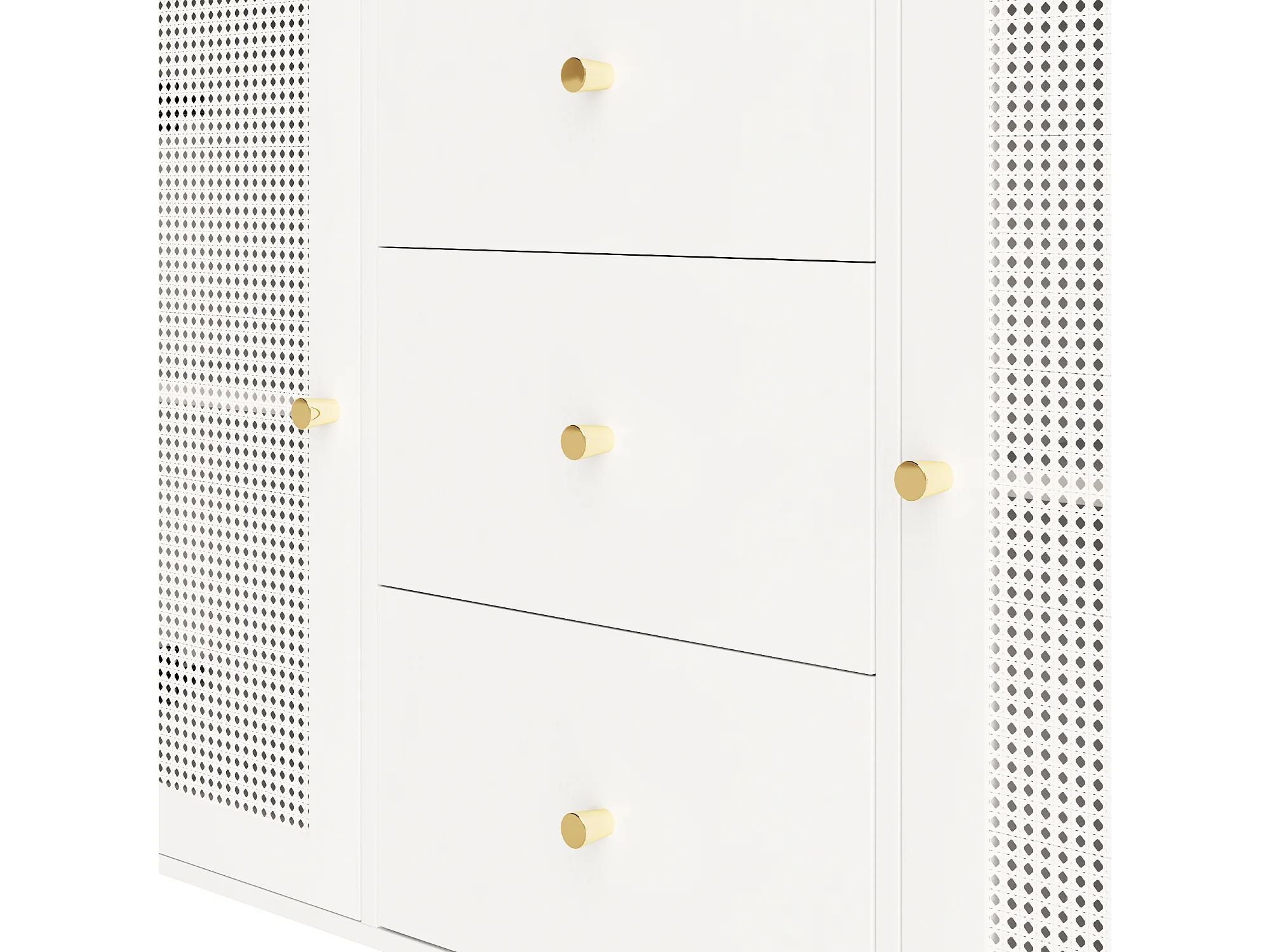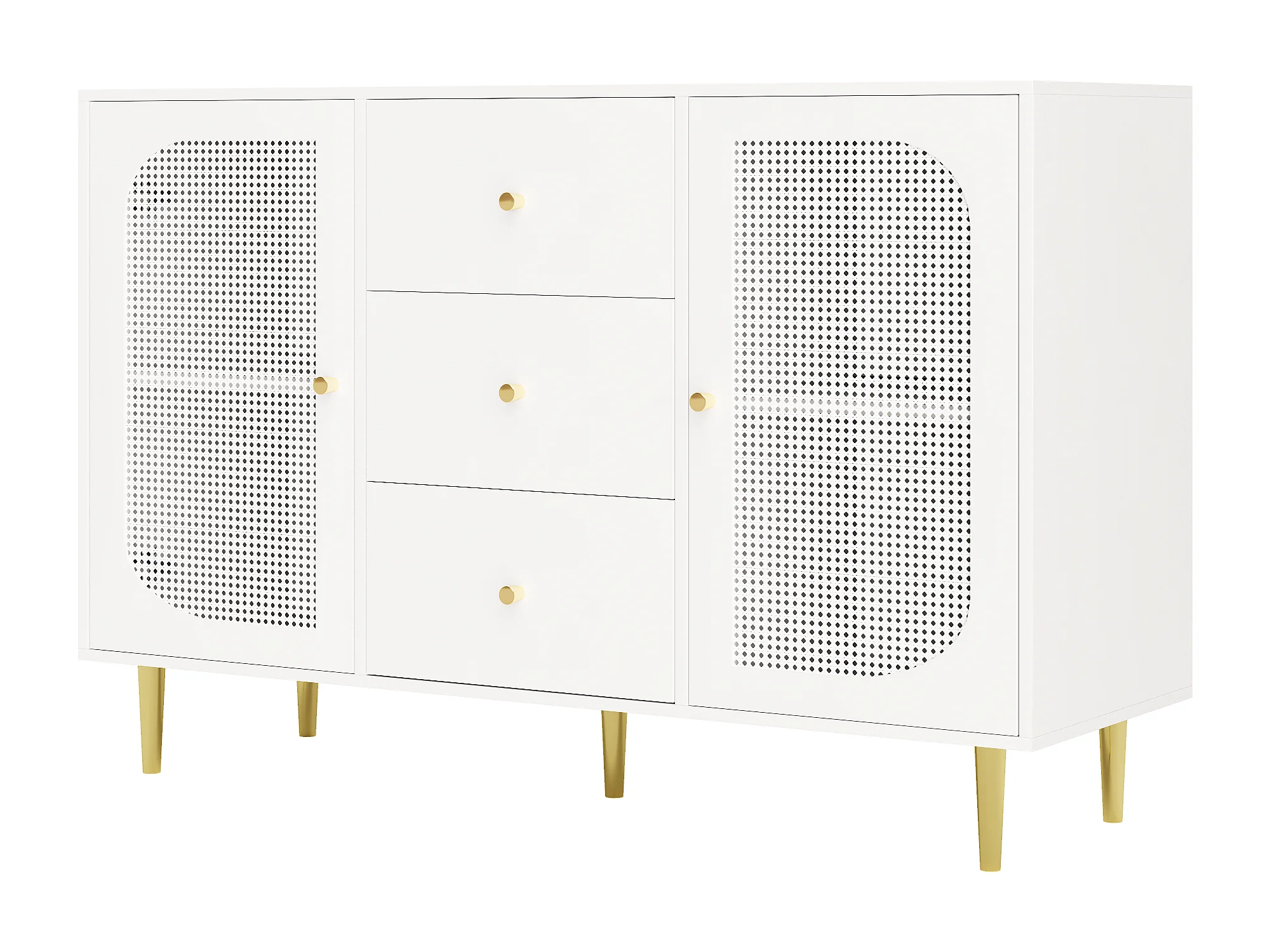 Buffet blanc - Buffet avec 3 tiroirs et 2 portes - portes en résine tressée