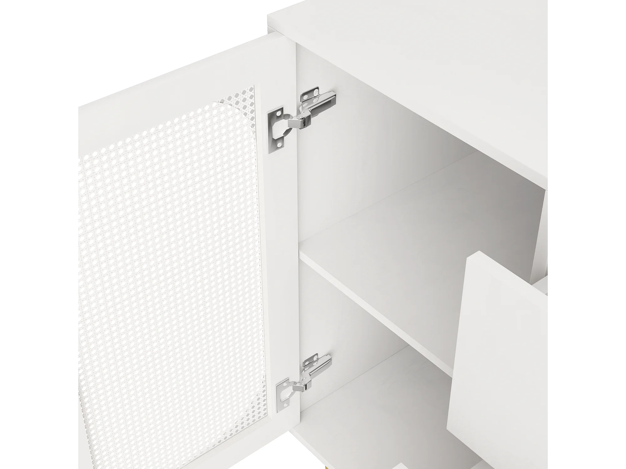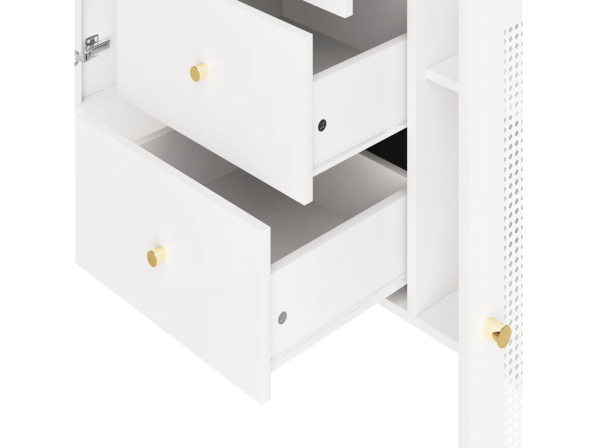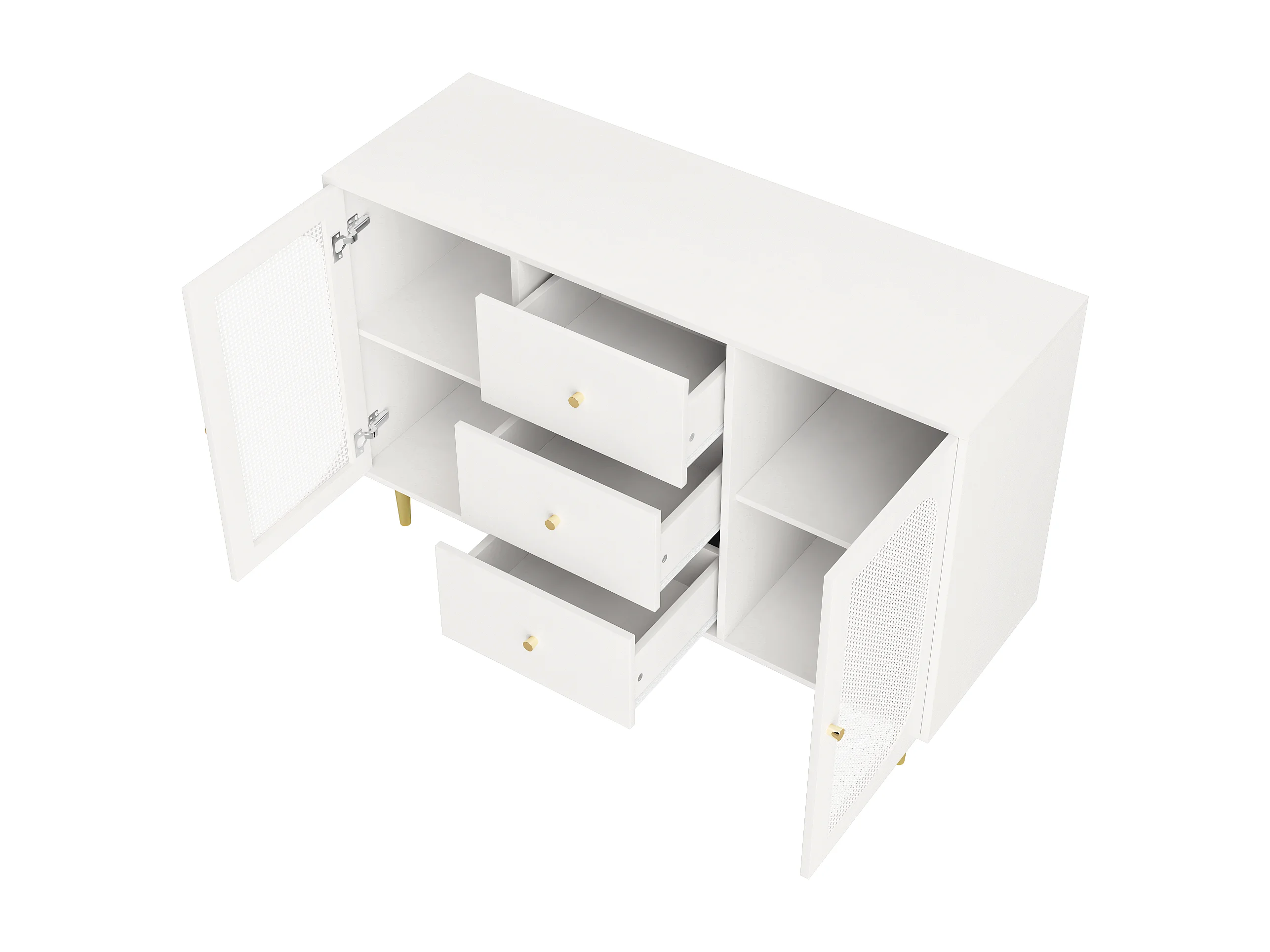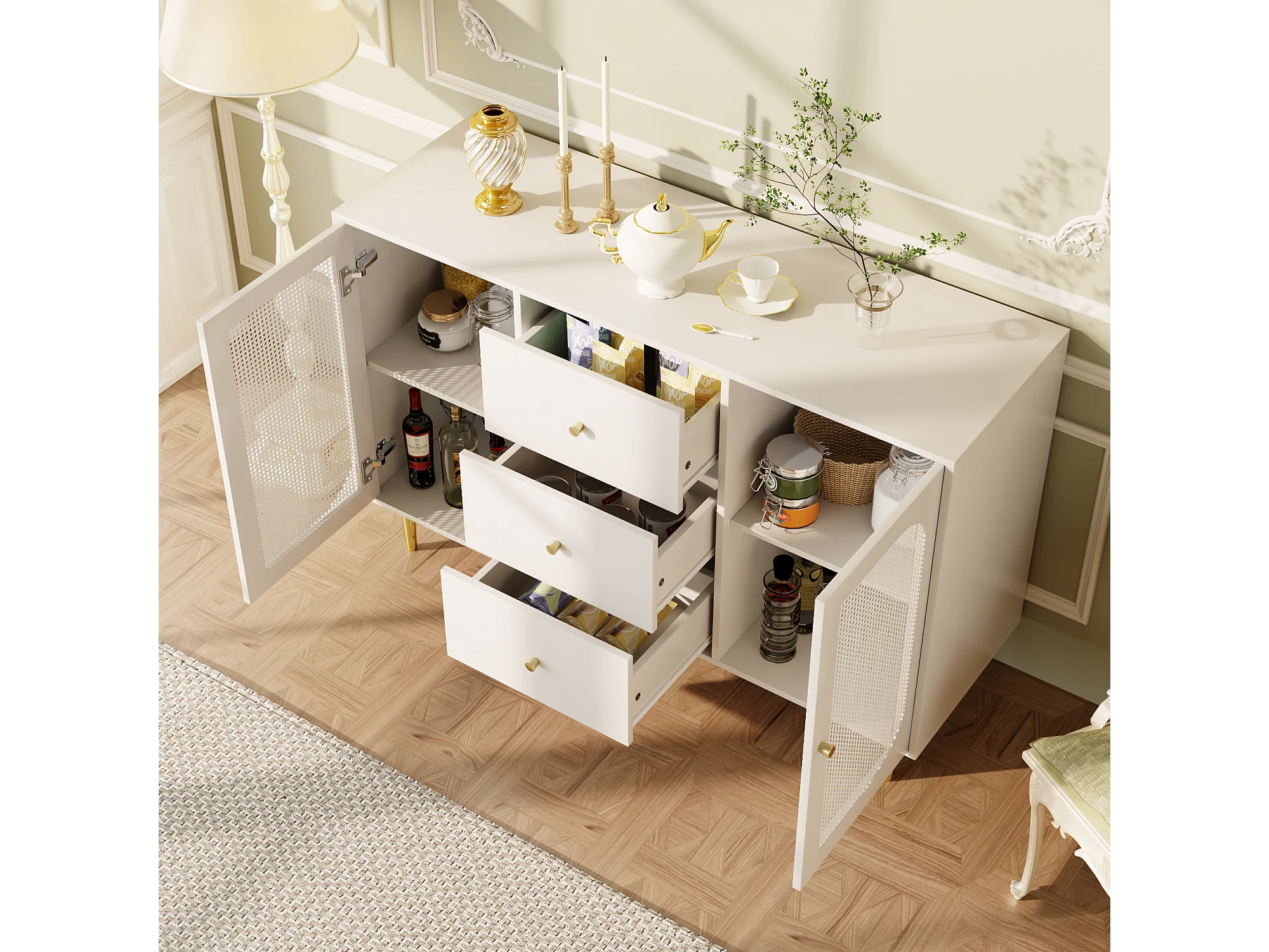 Buffet blanc - Buffet avec 3 tiroirs et 2 portes - portes en résine tressée