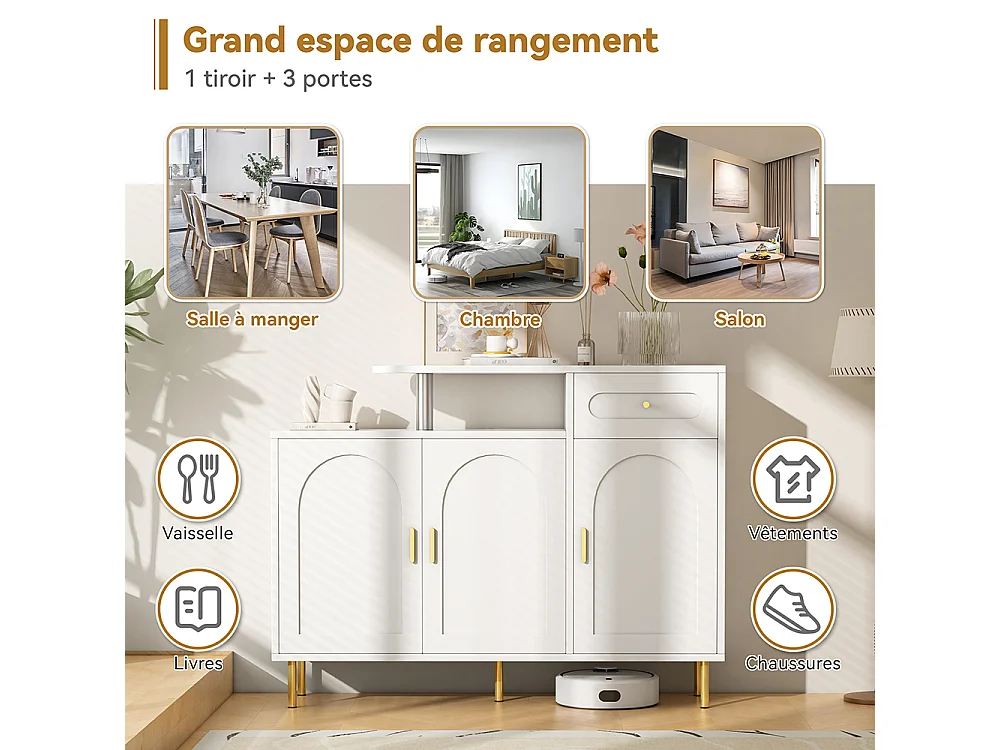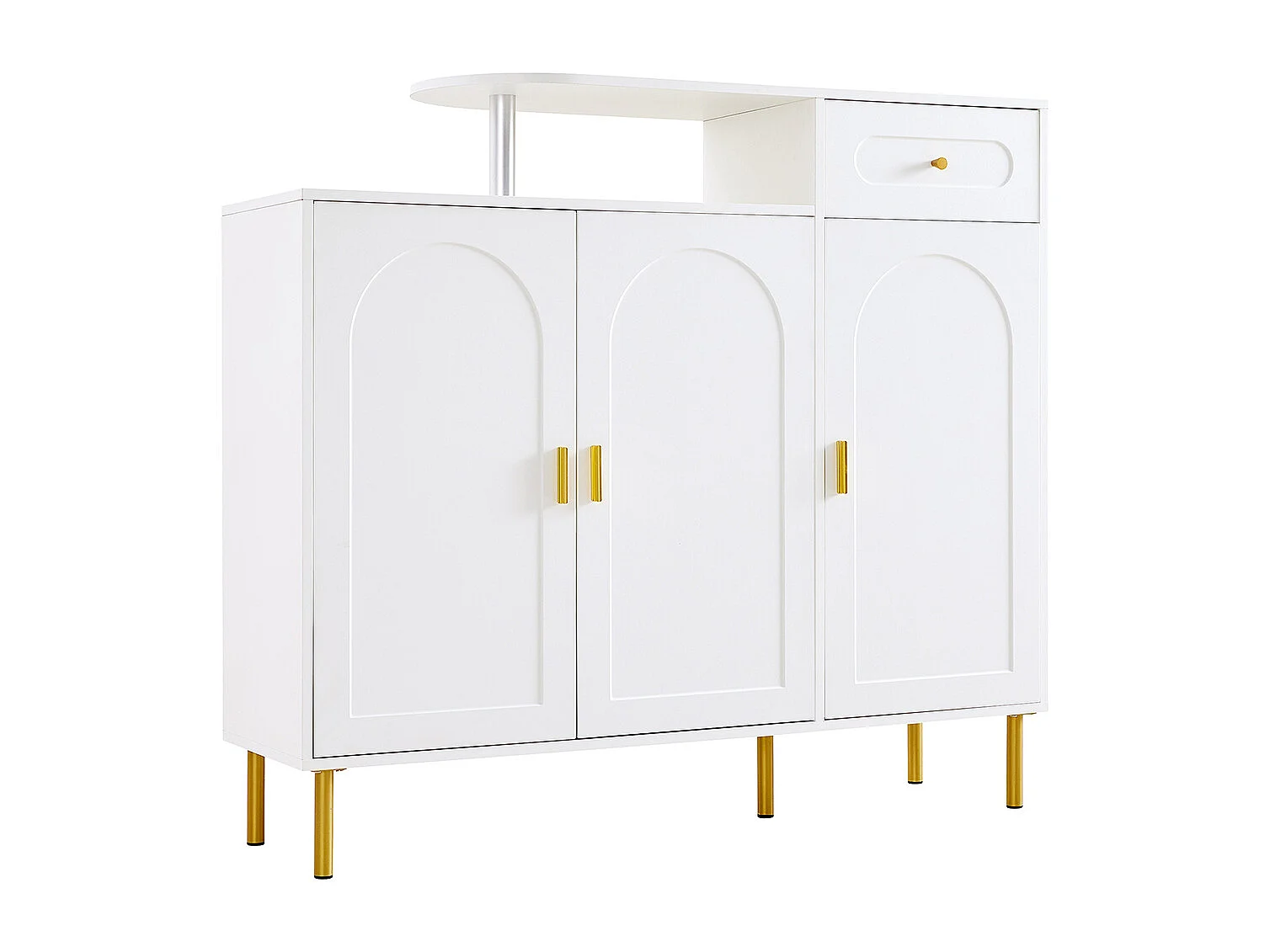 Buffet blanc commode meuble à chaussures poignées métalliques 1 tiroir 3 portes pieds métalliques